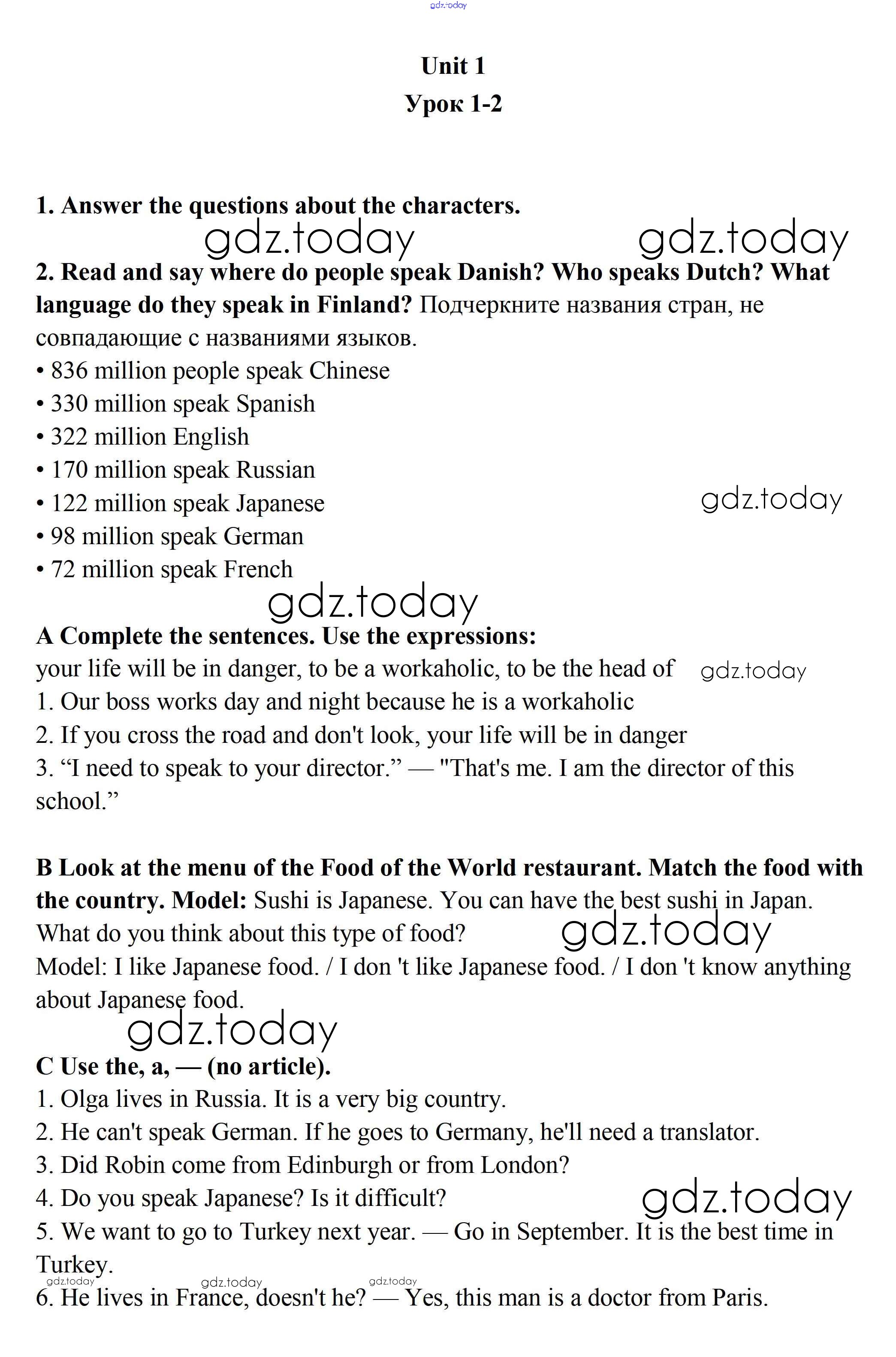 Ответы к Unit 1 (Урок) Решение к части 1 1-2 Рабочей тетради по Английскому языку для 7 класса Кауфман Титул Happy English 2017