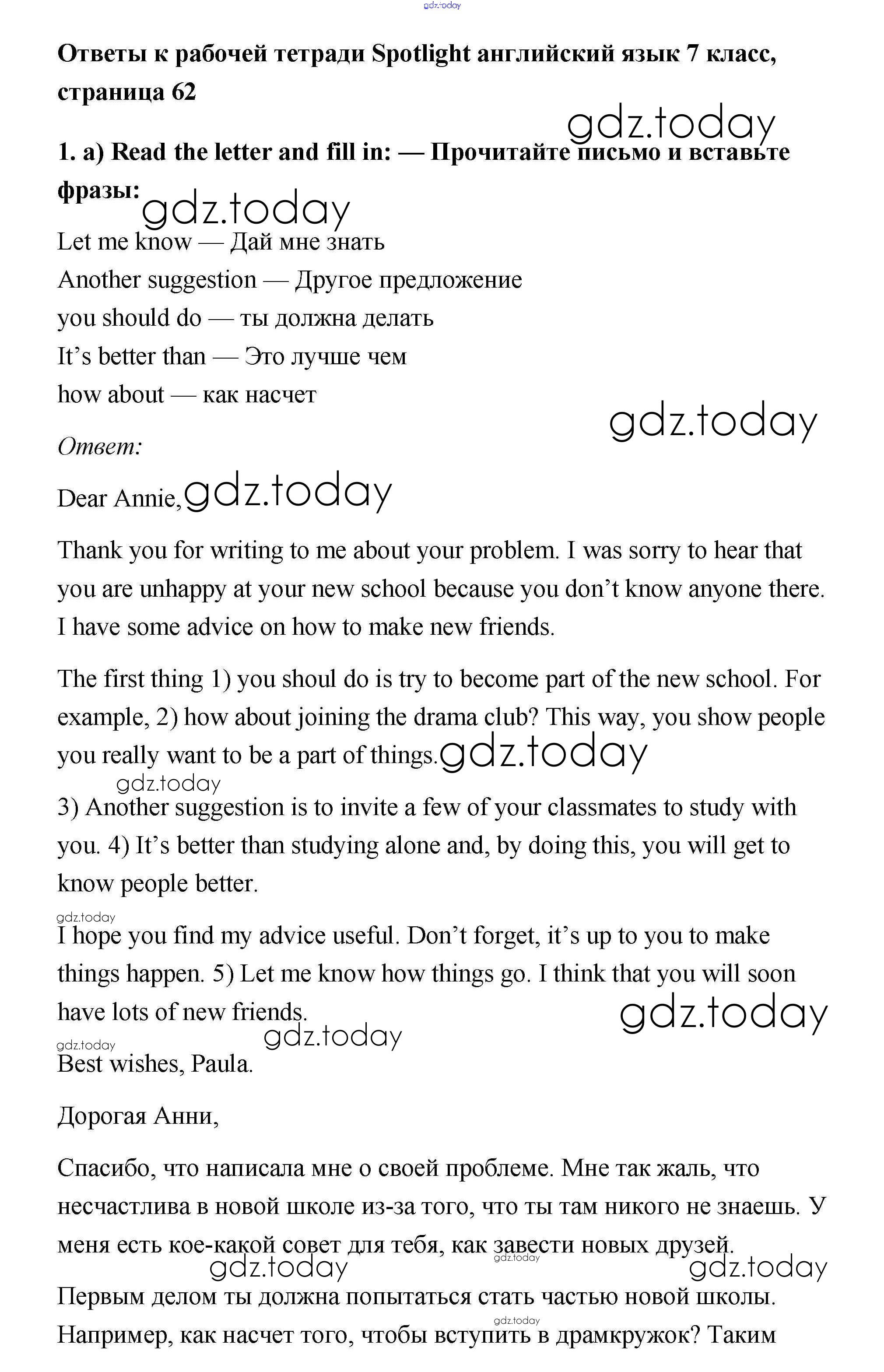 На страницах сайта gdz.today вы найдете учебный и вспомогательный материал, направленный на улучшения знаний школьной программы. ГДЗ - онлайн мир знаний Writing Решение к Module 10 1 Рабочей тетради по Английскому языку для 7 класса Ваулина, Подоляко Просвещение Spotlight 2015