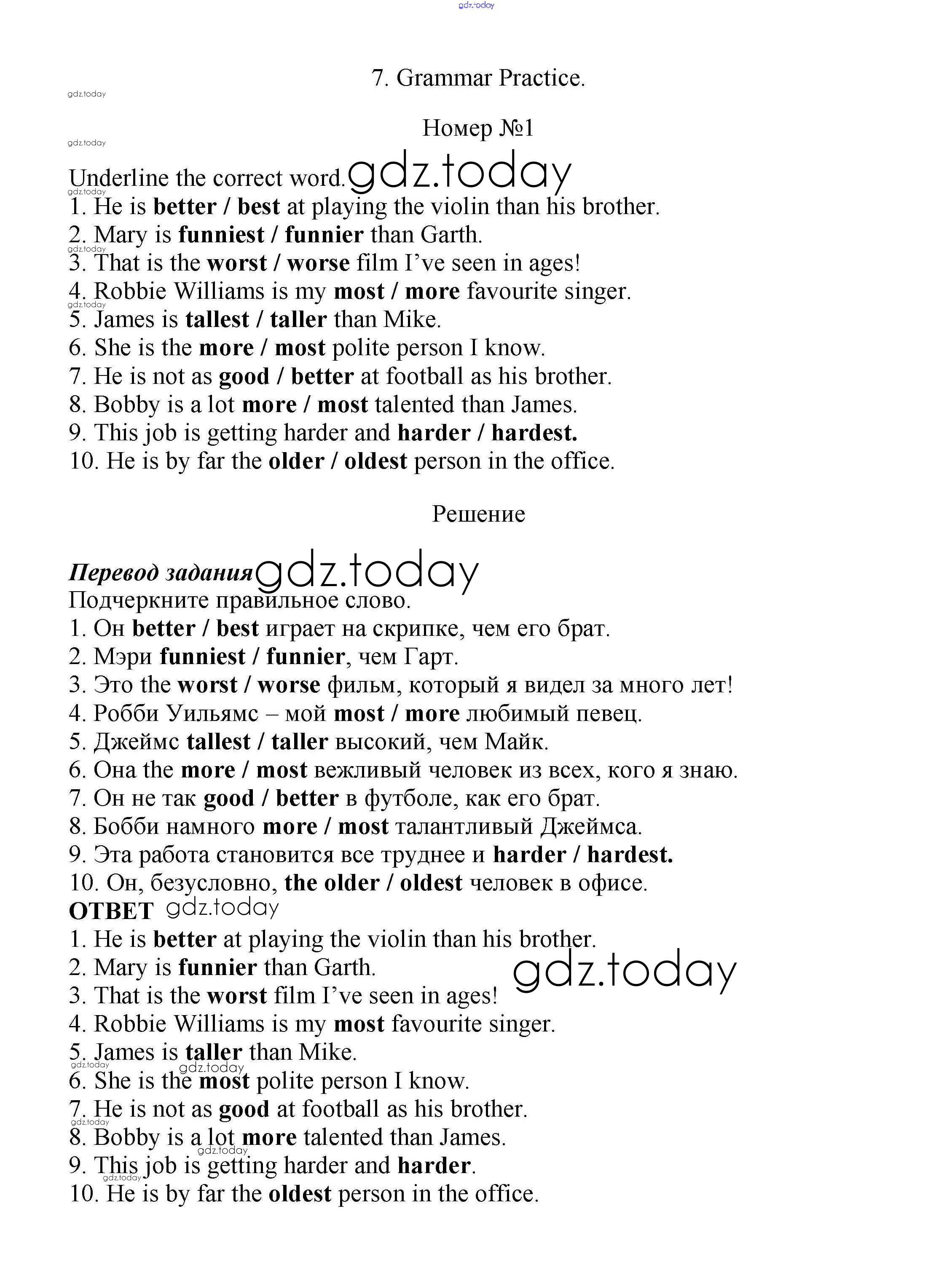 На страницах сайта gdz.today вы найдете учебный и вспомогательный материал, направленный на улучшения знаний школьной программы. ГДЗ - онлайн мир знаний Grammar Practice Решение к Module 7 1 Рабочей тетради по Английскому языку для 7 класса Ваулина, Подоляко Просвещение Spotlight 2015