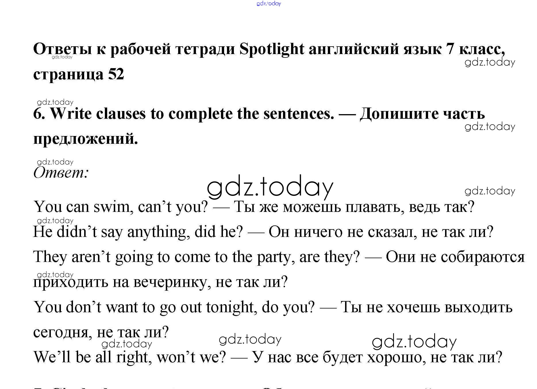На страницах сайта gdz.today вы найдете учебный и вспомогательный материал, направленный на улучшения знаний школьной программы. ГДЗ - онлайн мир знаний Grammar Practice Решение к Module 8 6 Рабочей тетради по Английскому языку для 7 класса Ваулина, Подоляко Просвещение Spotlight 2015