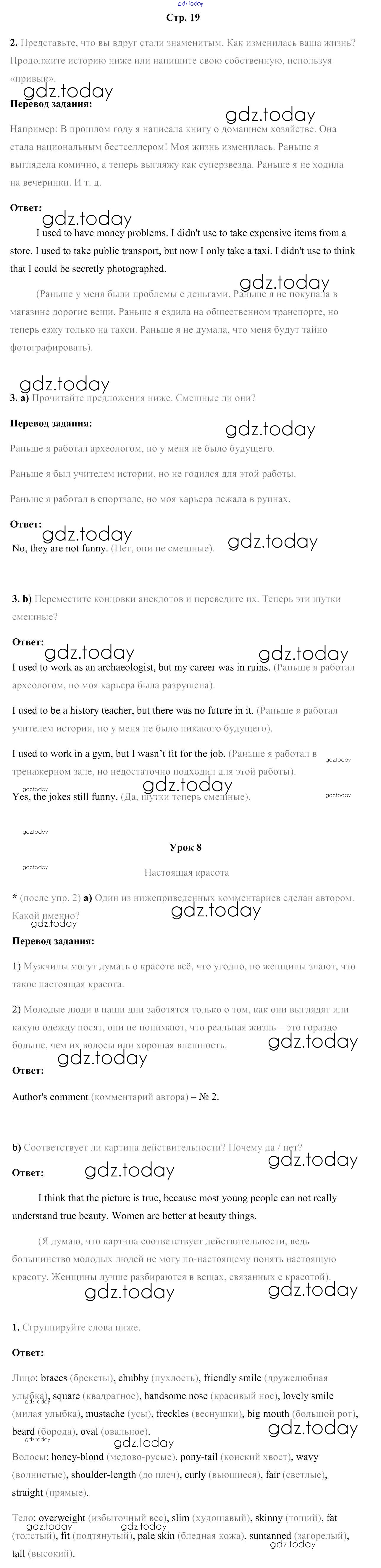 Ответы к Решение к части 1. Страницы 19 Рабочей тетради по Английскому языку для 7 класса Юхнель, Наумова Аверсэв 2016