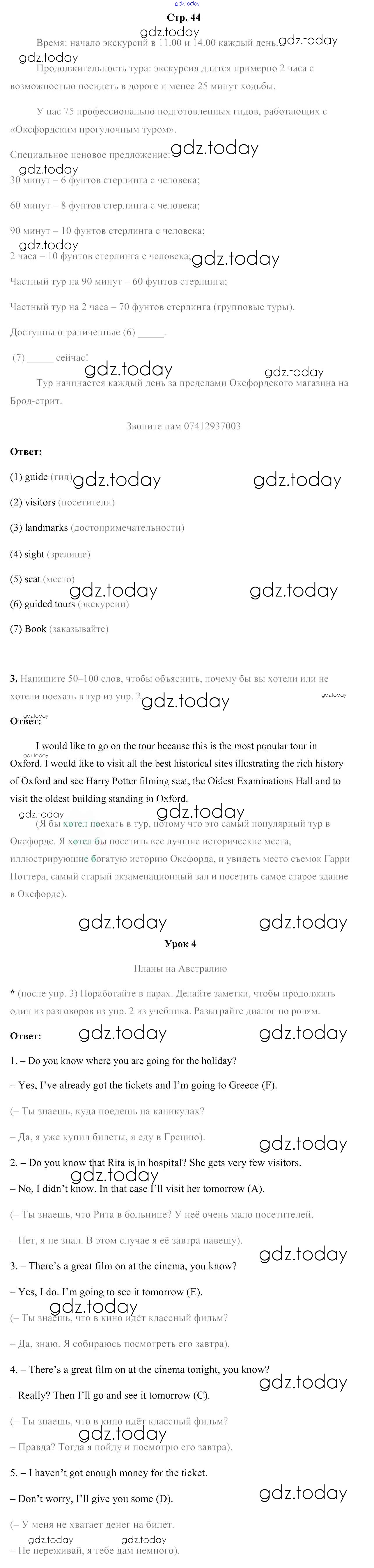 На страницах сайта gdz.today вы найдете учебный и вспомогательный материал, направленный на улучшения знаний школьной программы. ГДЗ - онлайн мир знаний Решение к части 2. Страницы 44 Рабочей тетради по Английскому языку для 7 класса Юхнель, Наумова Аверсэв 2016