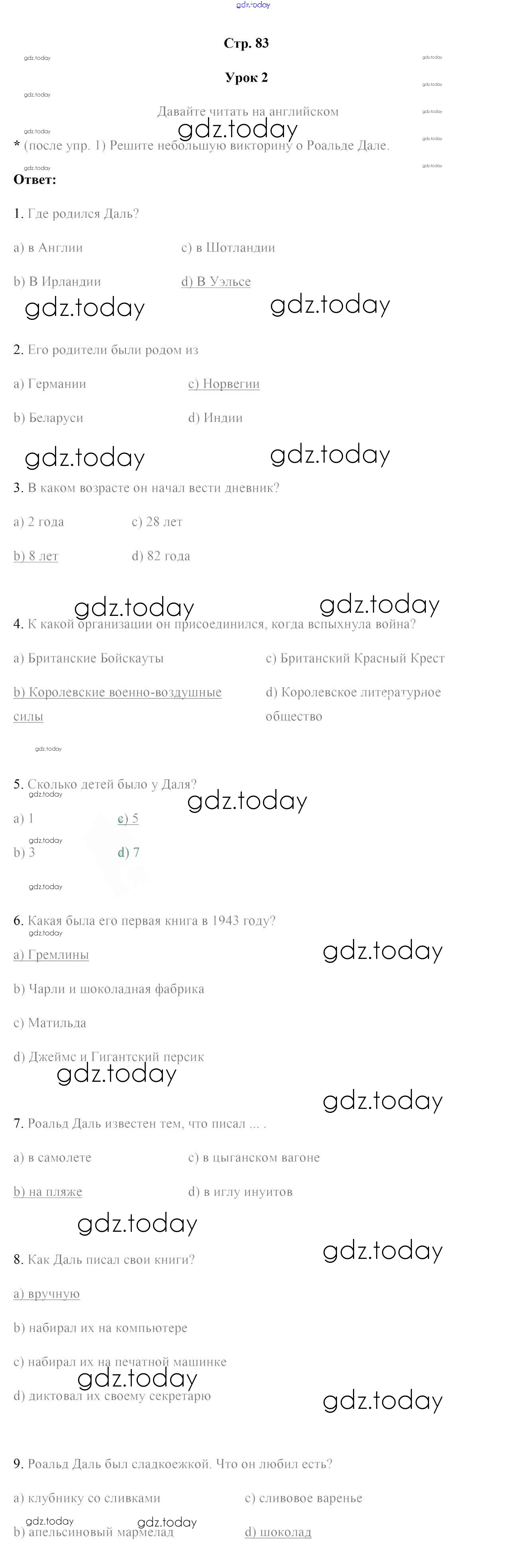 На страницах сайта gdz.today вы найдете учебный и вспомогательный материал, направленный на улучшения знаний школьной программы. ГДЗ - онлайн мир знаний Решение к части 2. Страницы 83 Рабочей тетради по Английскому языку для 7 класса Юхнель, Наумова Аверсэв 2016