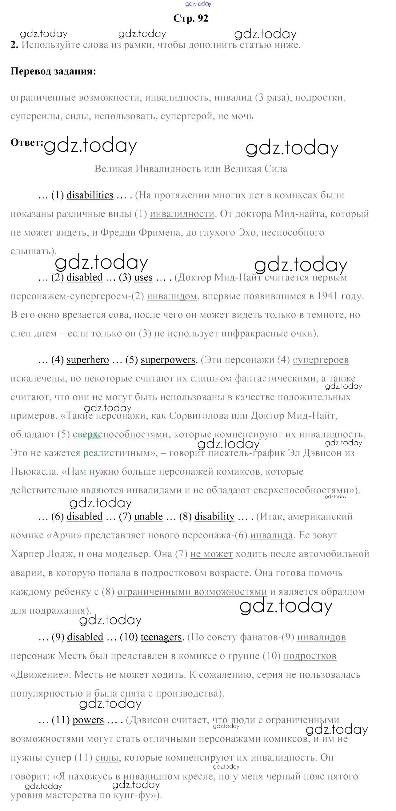 На страницах сайта gdz.today вы найдете учебный и вспомогательный материал, направленный на улучшения знаний школьной программы. ГДЗ - онлайн мир знаний Решение к части 2. Страницы 92 Рабочей тетради по Английскому языку для 7 класса Юхнель, Наумова Аверсэв 2016
