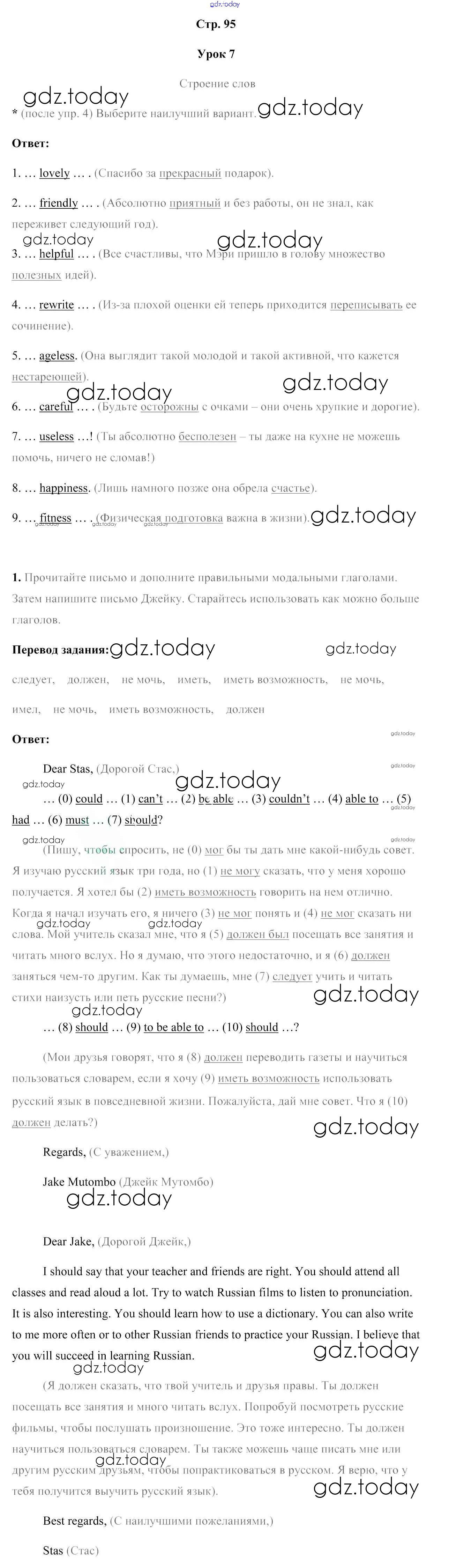 На страницах сайта gdz.today вы найдете учебный и вспомогательный материал, направленный на улучшения знаний школьной программы. ГДЗ - онлайн мир знаний Решение к части 2. Страницы 95 Рабочей тетради по Английскому языку для 7 класса Юхнель, Наумова Аверсэв 2016