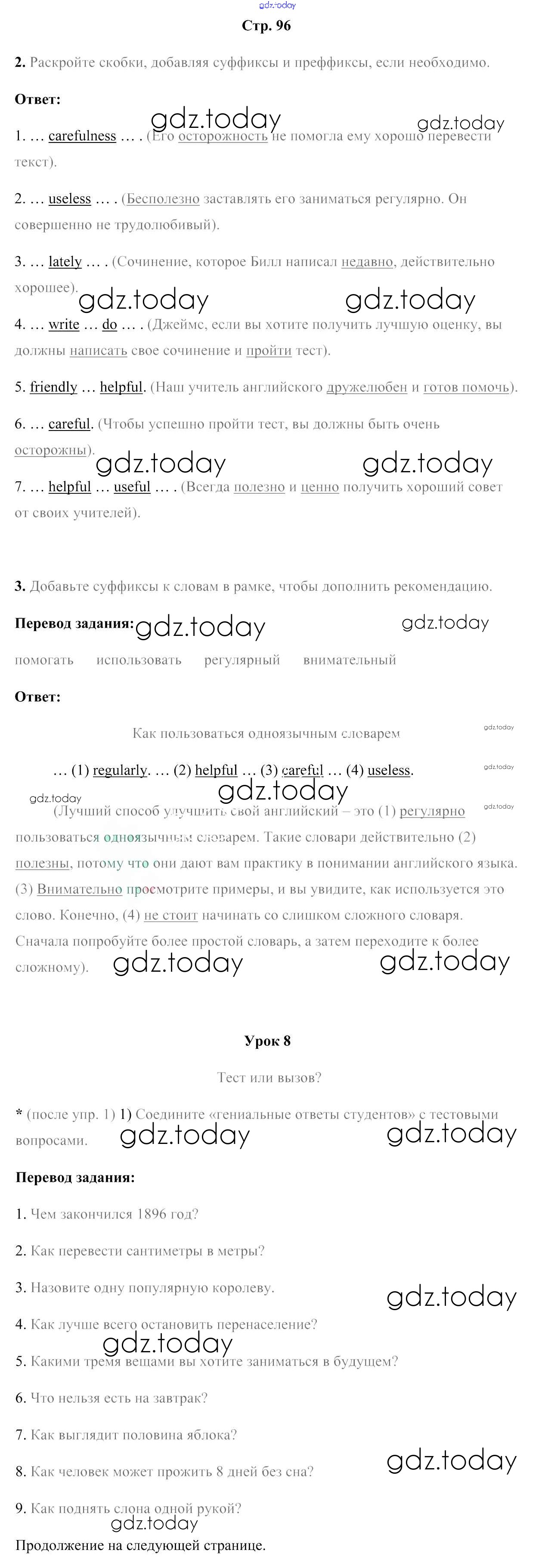 На страницах сайта gdz.today вы найдете учебный и вспомогательный материал, направленный на улучшения знаний школьной программы. ГДЗ - онлайн мир знаний Решение к части 2. Страницы 96 Рабочей тетради по Английскому языку для 7 класса Юхнель, Наумова Аверсэв 2016