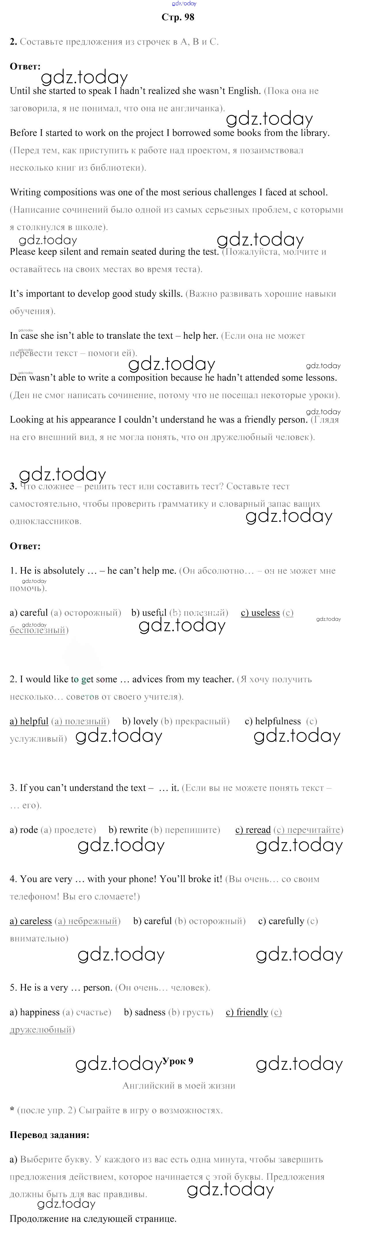 На страницах сайта gdz.today вы найдете учебный и вспомогательный материал, направленный на улучшения знаний школьной программы. ГДЗ - онлайн мир знаний Решение к части 2. Страницы 98 Рабочей тетради по Английскому языку для 7 класса Юхнель, Наумова Аверсэв 2016