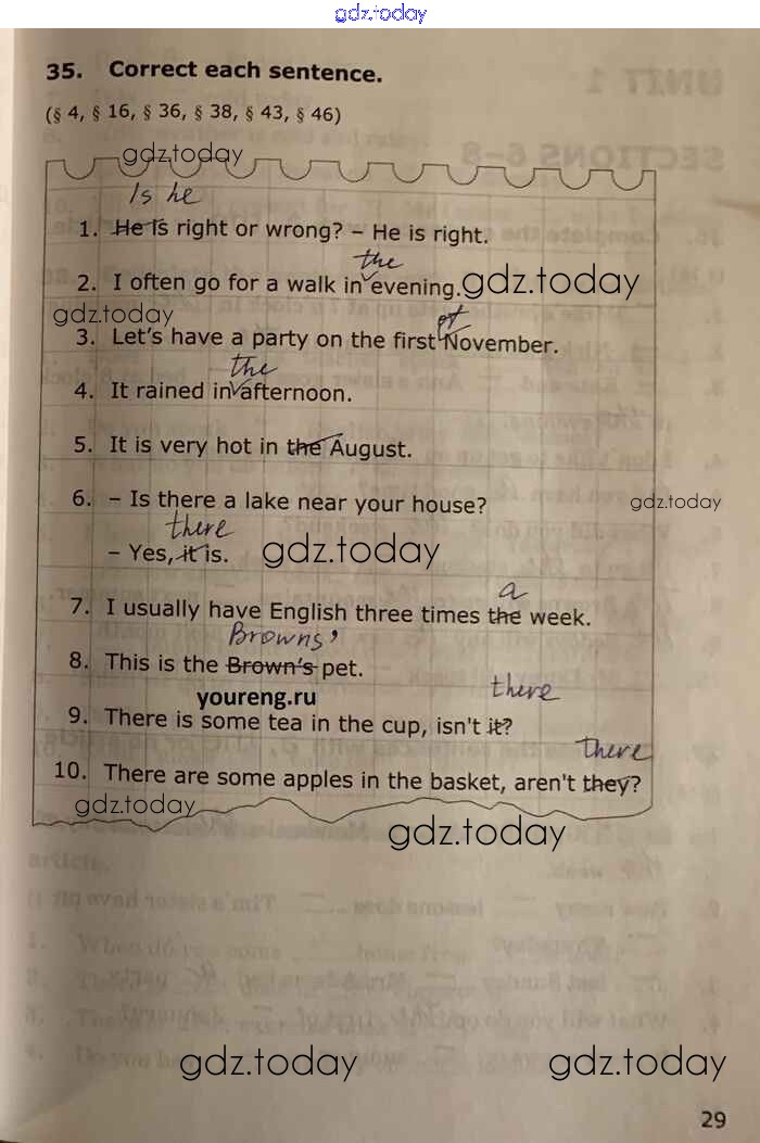 На страницах сайта gdz.today вы найдете учебный и вспомогательный материал, направленный на улучшения знаний школьной программы. ГДЗ - онлайн мир знаний Unit 1 Решение к части 1 стр.29 Сборнику упражнений по Английскому языку для 7 класса Барашкова Экзамен УМК 2017