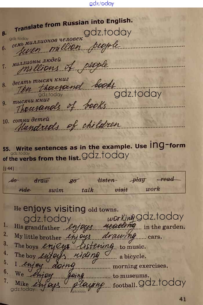 На страницах сайта gdz.today вы найдете учебный и вспомогательный материал, направленный на улучшения знаний школьной программы. ГДЗ - онлайн мир знаний Unit 1 Решение к части 1 стр.41 Сборнику упражнений по Английскому языку для 7 класса Барашкова Экзамен УМК 2017
