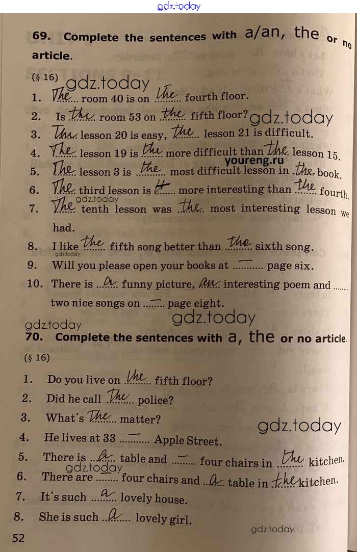 На страницах сайта gdz.today вы найдете учебный и вспомогательный материал, направленный на улучшения знаний школьной программы. ГДЗ - онлайн мир знаний Unit 1 Решение к части 1 стр.52 Сборнику упражнений по Английскому языку для 7 класса Барашкова Экзамен УМК 2017