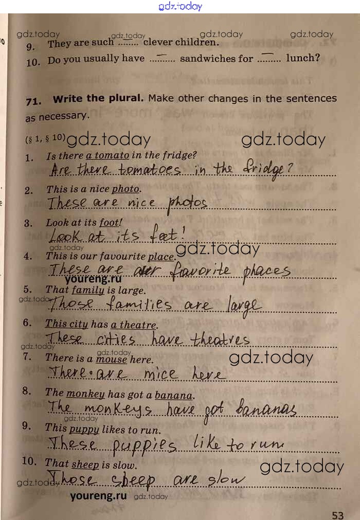 На страницах сайта gdz.today вы найдете учебный и вспомогательный материал, направленный на улучшения знаний школьной программы. ГДЗ - онлайн мир знаний Unit 1 Решение к части 1 стр.53 Сборнику упражнений по Английскому языку для 7 класса Барашкова Экзамен УМК 2017