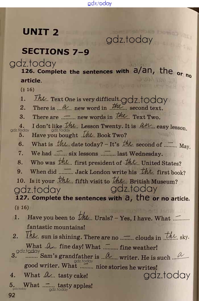 На страницах сайта gdz.today вы найдете учебный и вспомогательный материал, направленный на улучшения знаний школьной программы. ГДЗ - онлайн мир знаний Unit 2 Решение к части 1 стр.92 Сборнику упражнений по Английскому языку для 7 класса Барашкова Экзамен УМК 2017