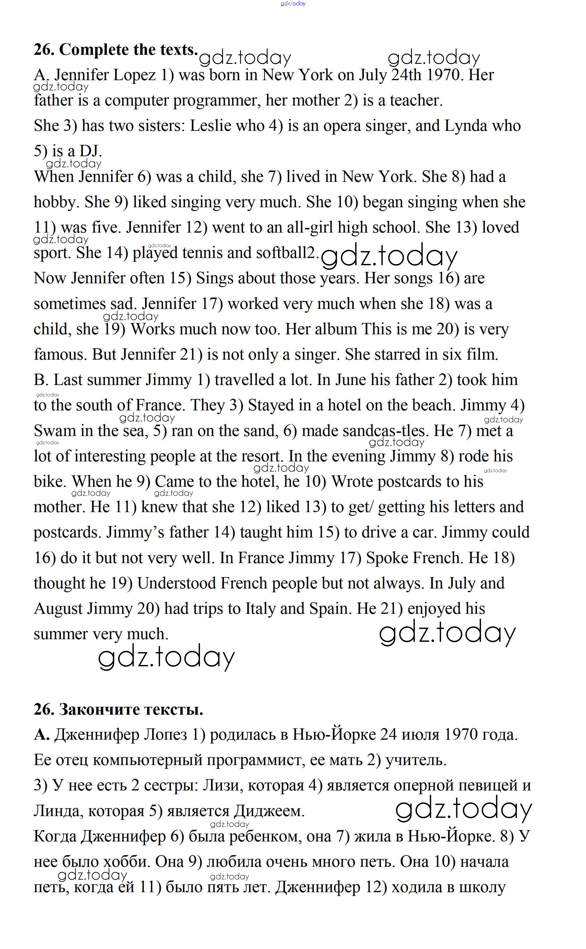 На страницах сайта gdz.today вы найдете учебный и вспомогательный материал, направленный на улучшения знаний школьной программы. ГДЗ - онлайн мир знаний Unit 1 Решение к части 1 26 Рабочей тетради по Английскому языку для 7 класса Афанасьева, Михеева Дрофа Новый курс 2017