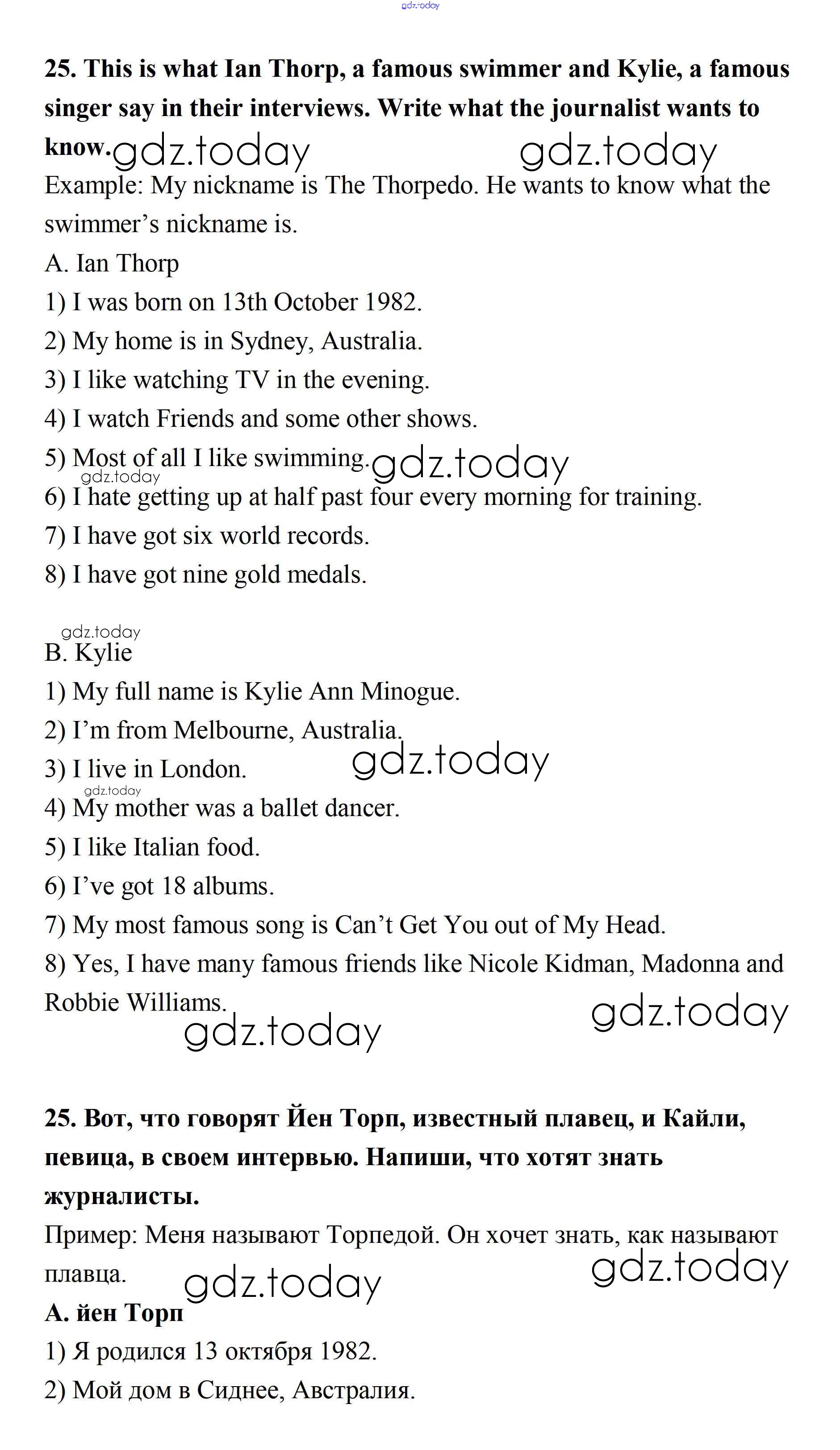 На страницах сайта gdz.today вы найдете учебный и вспомогательный материал, направленный на улучшения знаний школьной программы. ГДЗ - онлайн мир знаний Unit 3 Решение к части 1 25 Рабочей тетради по Английскому языку для 7 класса Афанасьева, Михеева Дрофа Новый курс 2017