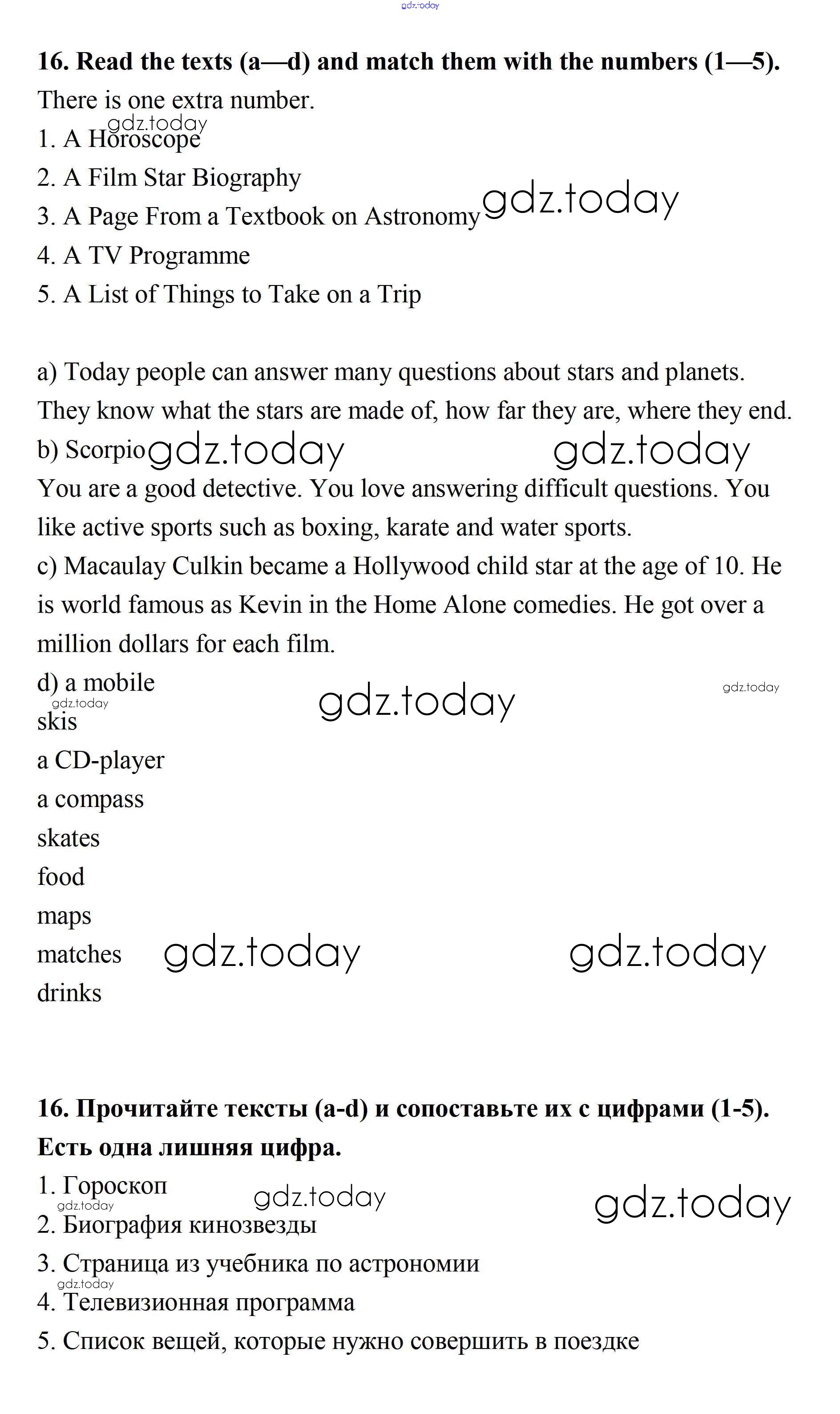 На страницах сайта gdz.today вы найдете учебный и вспомогательный материал, направленный на улучшения знаний школьной программы. ГДЗ - онлайн мир знаний Unit 5 Решение к части 2 16 Рабочей тетради по Английскому языку для 7 класса Афанасьева, Михеева Дрофа Новый курс 2017