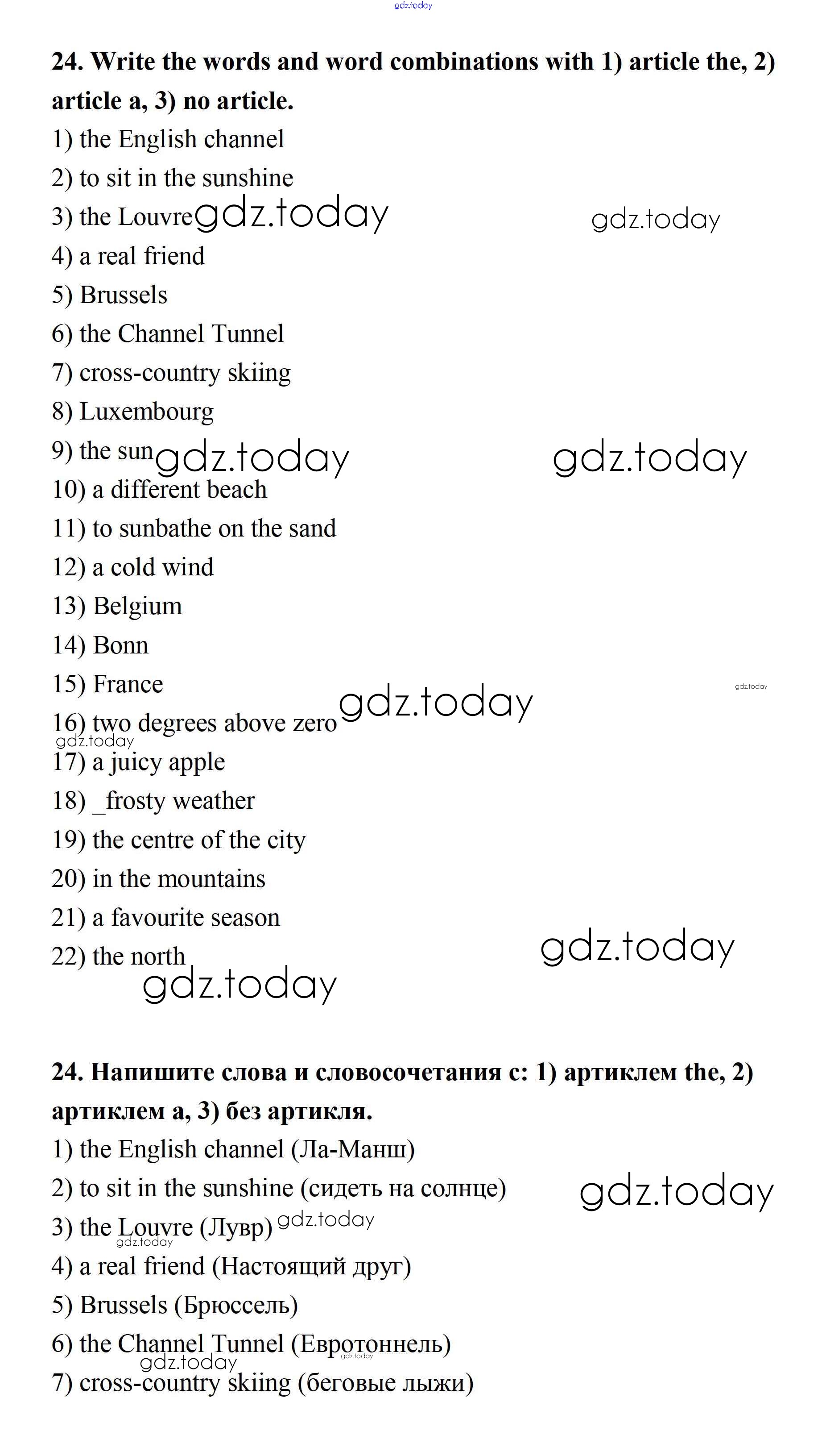 На страницах сайта gdz.today вы найдете учебный и вспомогательный материал, направленный на улучшения знаний школьной программы. ГДЗ - онлайн мир знаний Unit 5 Решение к части 2 24 Рабочей тетради по Английскому языку для 7 класса Афанасьева, Михеева Дрофа Новый курс 2017
