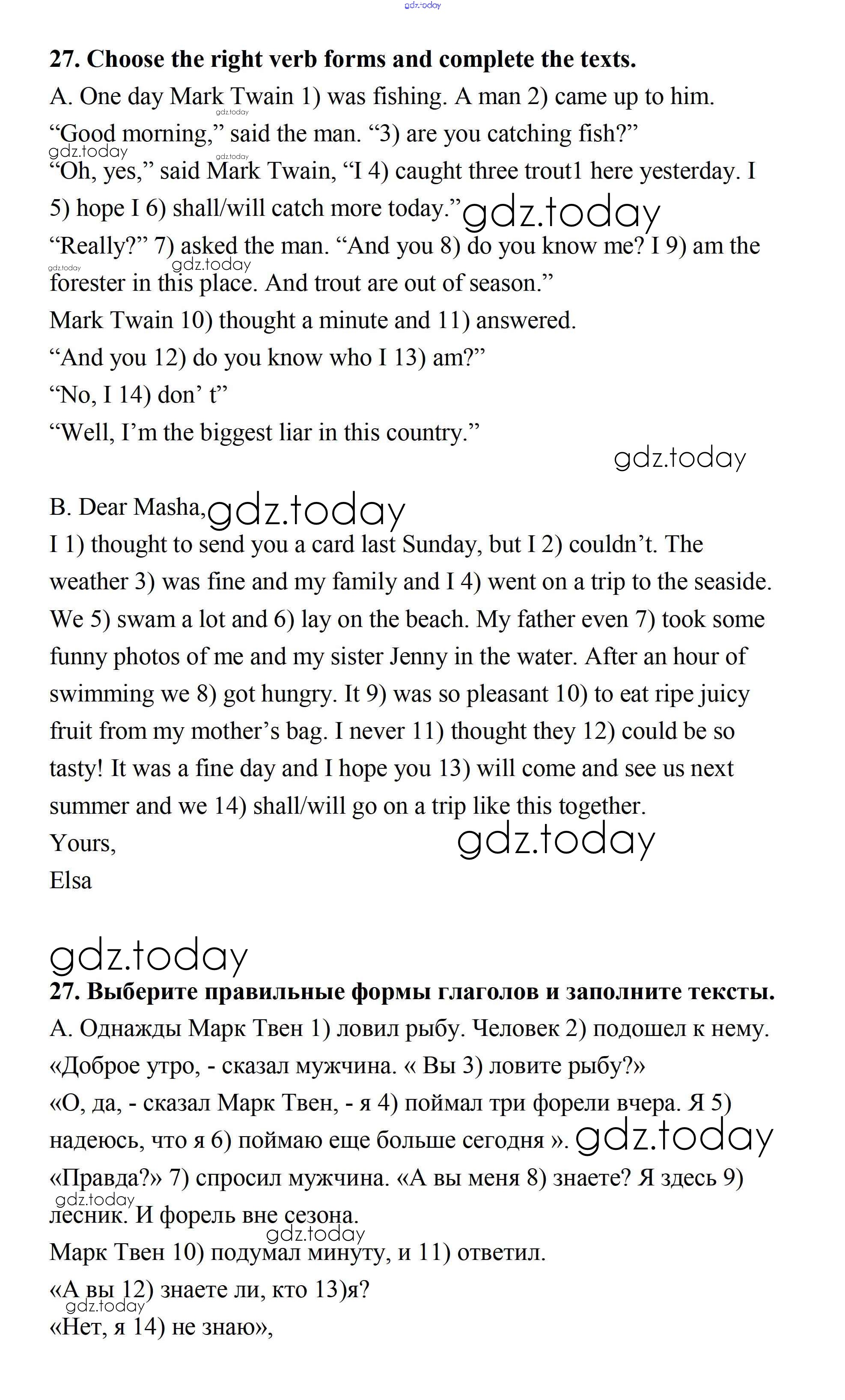 На страницах сайта gdz.today вы найдете учебный и вспомогательный материал, направленный на улучшения знаний школьной программы. ГДЗ - онлайн мир знаний Unit 5 Решение к части 2 27 Рабочей тетради по Английскому языку для 7 класса Афанасьева, Михеева Дрофа Новый курс 2017