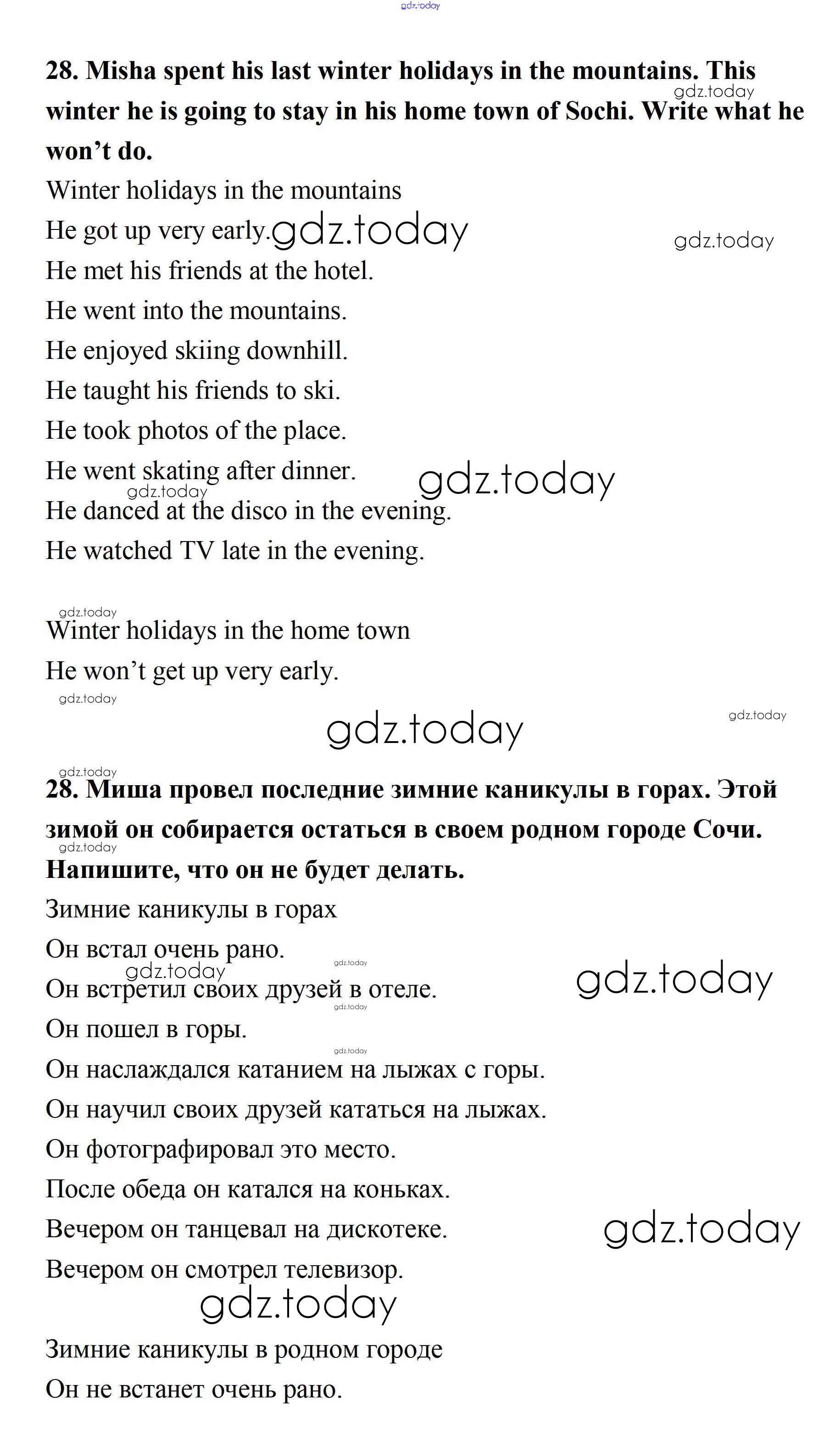 На страницах сайта gdz.today вы найдете учебный и вспомогательный материал, направленный на улучшения знаний школьной программы. ГДЗ - онлайн мир знаний Unit 5 Решение к части 2 28 Рабочей тетради по Английскому языку для 7 класса Афанасьева, Михеева Дрофа Новый курс 2017