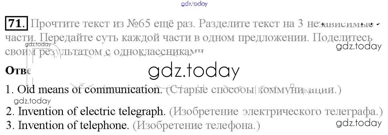 На страницах сайта gdz.today вы найдете учебный и вспомогательный материал, направленный на улучшения знаний школьной программы. ГДЗ - онлайн мир знаний Exercises Unit 1 71 Учебнику по Английскому языку для 7 класса Биболетова, Трубанева Титул, Дрофа УМК 2015, 2017
