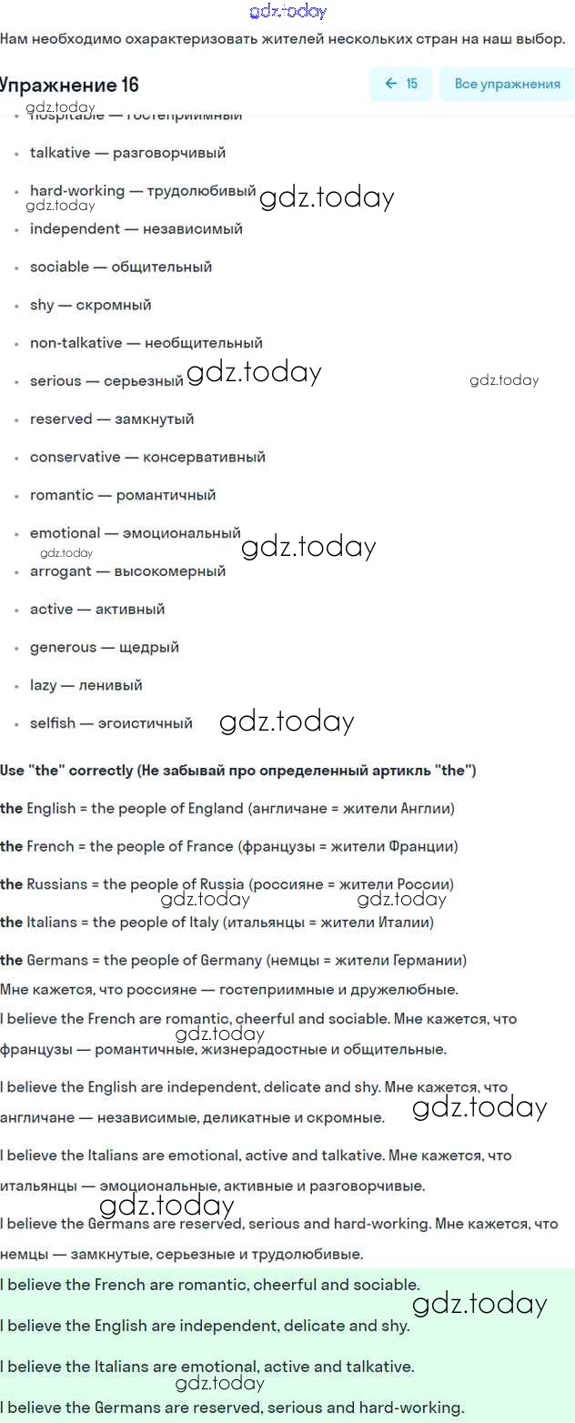 На страницах сайта gdz.today вы найдете учебный и вспомогательный материал, направленный на улучшения знаний школьной программы. ГДЗ - онлайн мир знаний Exercises Unit 2 16 Учебнику по Английскому языку для 7 класса Биболетова, Трубанева Титул, Дрофа УМК 2015, 2017
