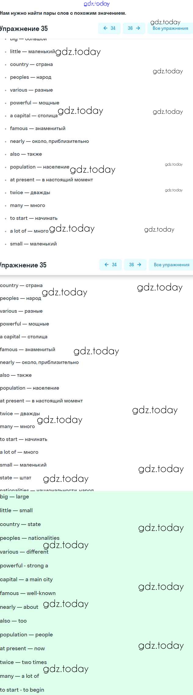 На страницах сайта gdz.today вы найдете учебный и вспомогательный материал, направленный на улучшения знаний школьной программы. ГДЗ - онлайн мир знаний Exercises Unit 2 35 Учебнику по Английскому языку для 7 класса Биболетова, Трубанева Титул, Дрофа УМК 2015, 2017