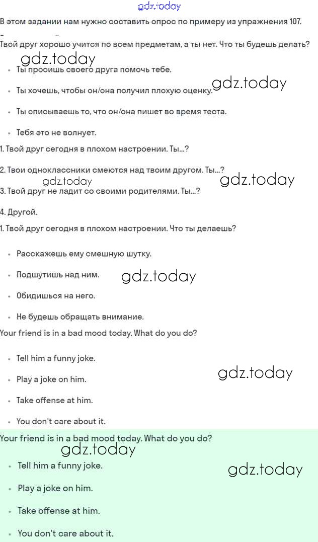 На страницах сайта gdz.today вы найдете учебный и вспомогательный материал, направленный на улучшения знаний школьной программы. ГДЗ - онлайн мир знаний Exercises Unit 3 108 Учебнику по Английскому языку для 7 класса Биболетова, Трубанева Титул, Дрофа УМК 2015, 2017