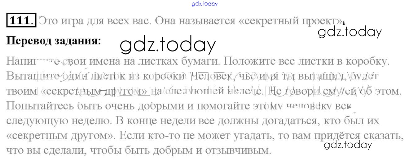 На страницах сайта gdz.today вы найдете учебный и вспомогательный материал, направленный на улучшения знаний школьной программы. ГДЗ - онлайн мир знаний Exercises Unit 3 111 Учебнику по Английскому языку для 7 класса Биболетова, Трубанева Титул, Дрофа УМК 2015, 2017