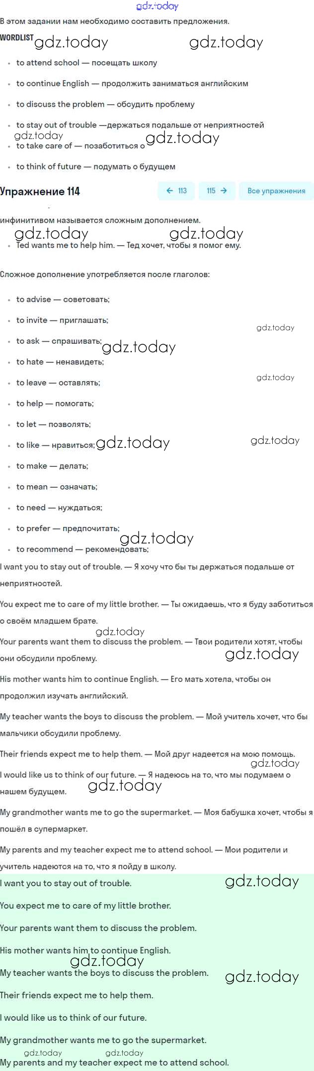 На страницах сайта gdz.today вы найдете учебный и вспомогательный материал, направленный на улучшения знаний школьной программы. ГДЗ - онлайн мир знаний Exercises Unit 3 114 Учебнику по Английскому языку для 7 класса Биболетова, Трубанева Титул, Дрофа УМК 2015, 2017