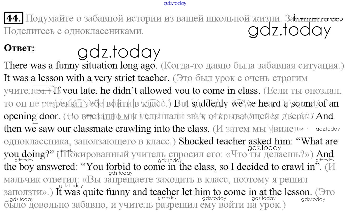 На страницах сайта gdz.today вы найдете учебный и вспомогательный материал, направленный на улучшения знаний школьной программы. ГДЗ - онлайн мир знаний Exercises Unit 3 44 Учебнику по Английскому языку для 7 класса Биболетова, Трубанева Титул, Дрофа УМК 2015, 2017