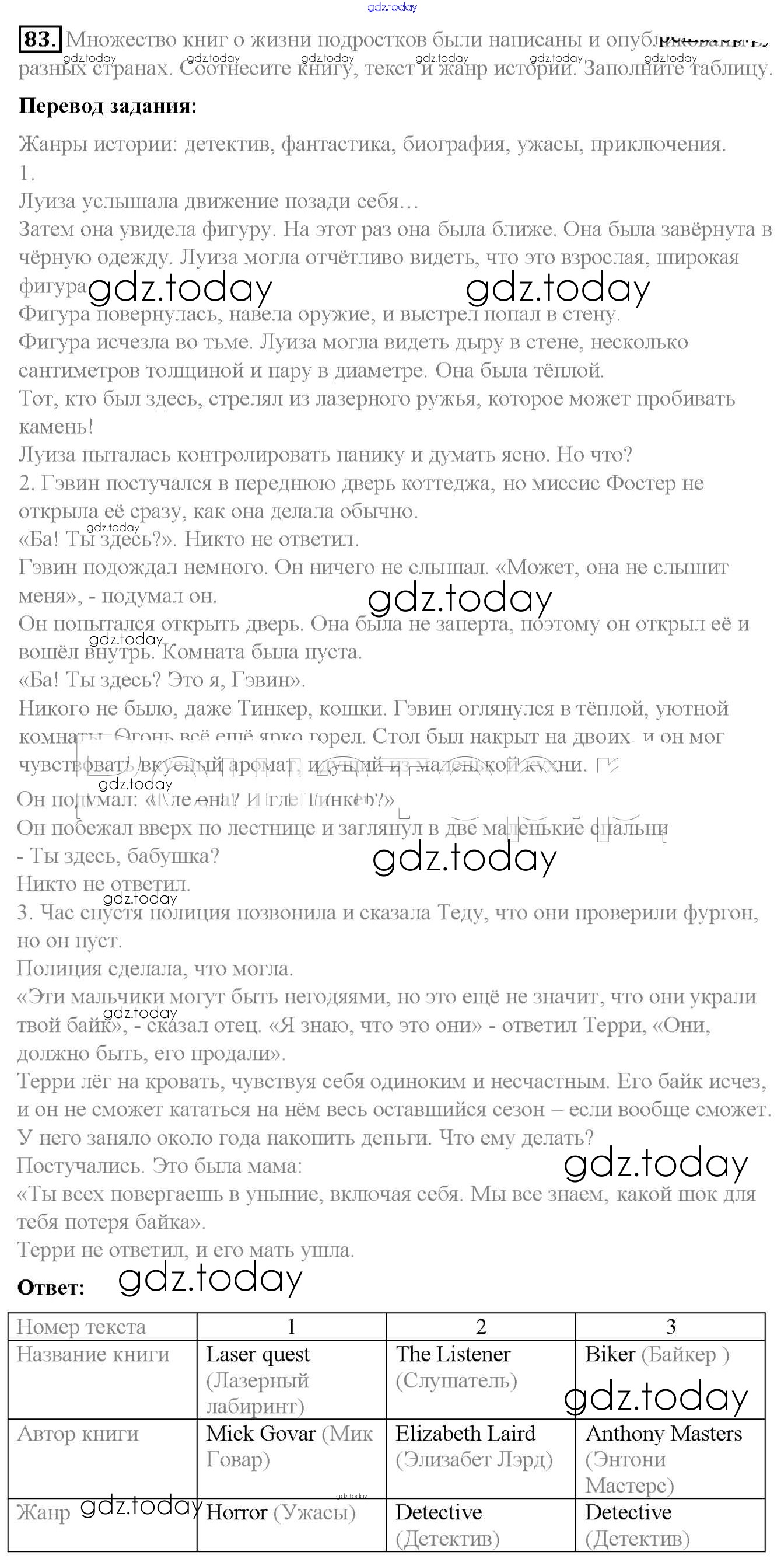 На страницах сайта gdz.today вы найдете учебный и вспомогательный материал, направленный на улучшения знаний школьной программы. ГДЗ - онлайн мир знаний Exercises Unit 3 83 Учебнику по Английскому языку для 7 класса Биболетова, Трубанева Титул, Дрофа УМК 2015, 2017