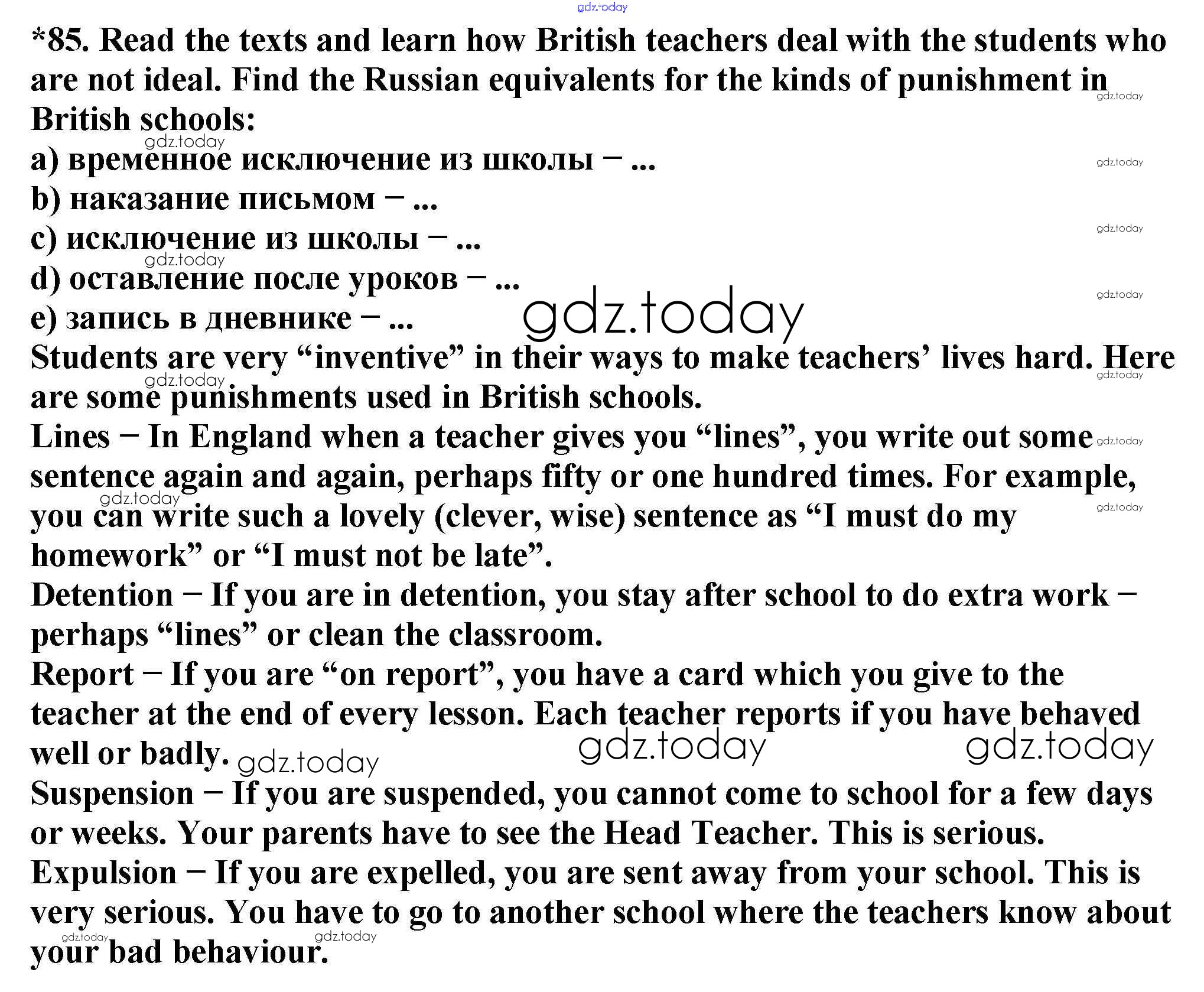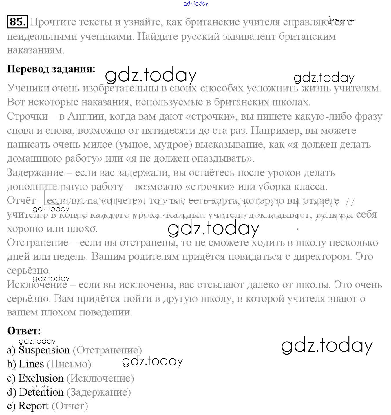 На страницах сайта gdz.today вы найдете учебный и вспомогательный материал, направленный на улучшения знаний школьной программы. ГДЗ - онлайн мир знаний Exercises Unit 3 85 Учебнику по Английскому языку для 7 класса Биболетова, Трубанева Титул, Дрофа УМК 2015, 2017