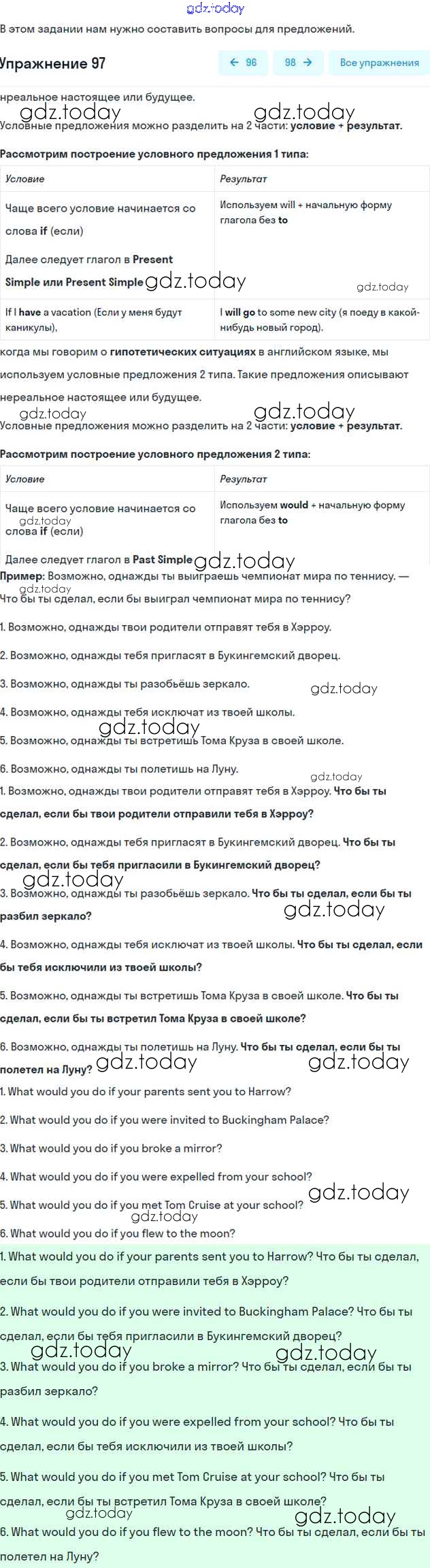 На страницах сайта gdz.today вы найдете учебный и вспомогательный материал, направленный на улучшения знаний школьной программы. ГДЗ - онлайн мир знаний Exercises Unit 3 97 Учебнику по Английскому языку для 7 класса Биболетова, Трубанева Титул, Дрофа УМК 2015, 2017