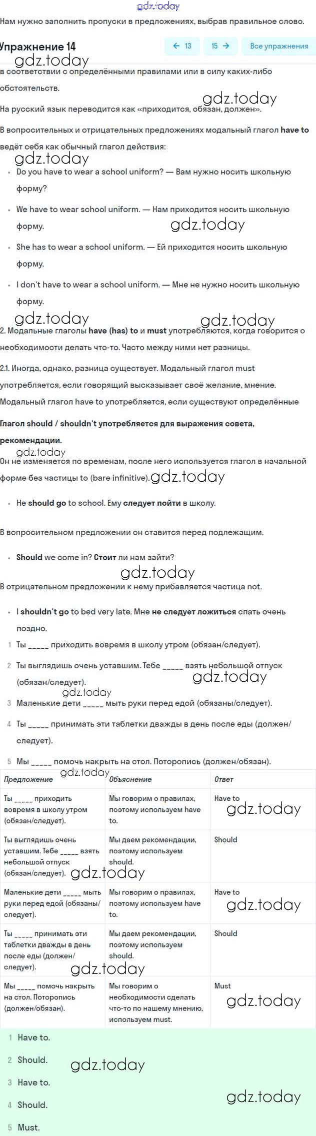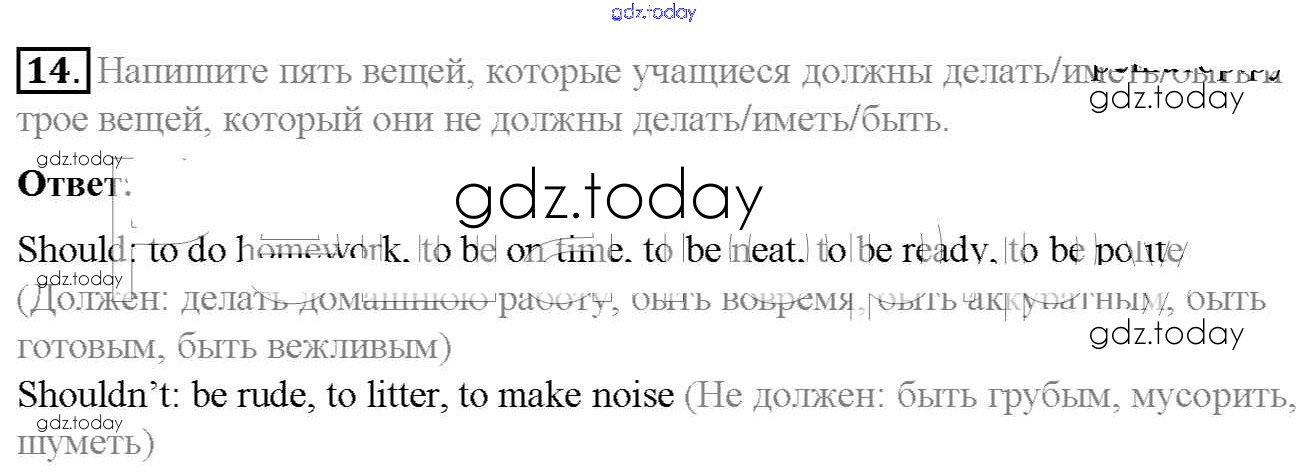 На страницах сайта gdz.today вы найдете учебный и вспомогательный материал, направленный на улучшения знаний школьной программы. ГДЗ - онлайн мир знаний Homework Unit 3 14 Учебнику по Английскому языку для 7 класса Биболетова, Трубанева Титул, Дрофа УМК 2015, 2017