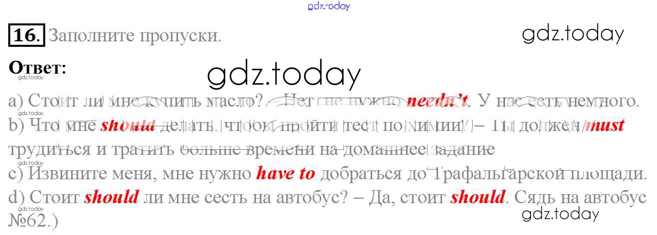 На страницах сайта gdz.today вы найдете учебный и вспомогательный материал, направленный на улучшения знаний школьной программы. ГДЗ - онлайн мир знаний Homework Unit 3 16 Учебнику по Английскому языку для 7 класса Биболетова, Трубанева Титул, Дрофа УМК 2015, 2017