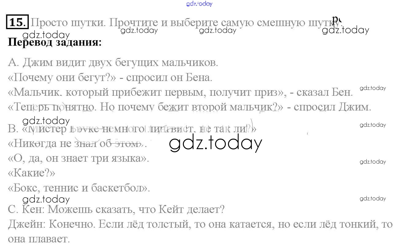 На страницах сайта gdz.today вы найдете учебный и вспомогательный материал, направленный на улучшения знаний школьной программы. ГДЗ - онлайн мир знаний Exercises Unit 4 15 Учебнику по Английскому языку для 7 класса Биболетова, Трубанева Титул, Дрофа УМК 2015, 2017