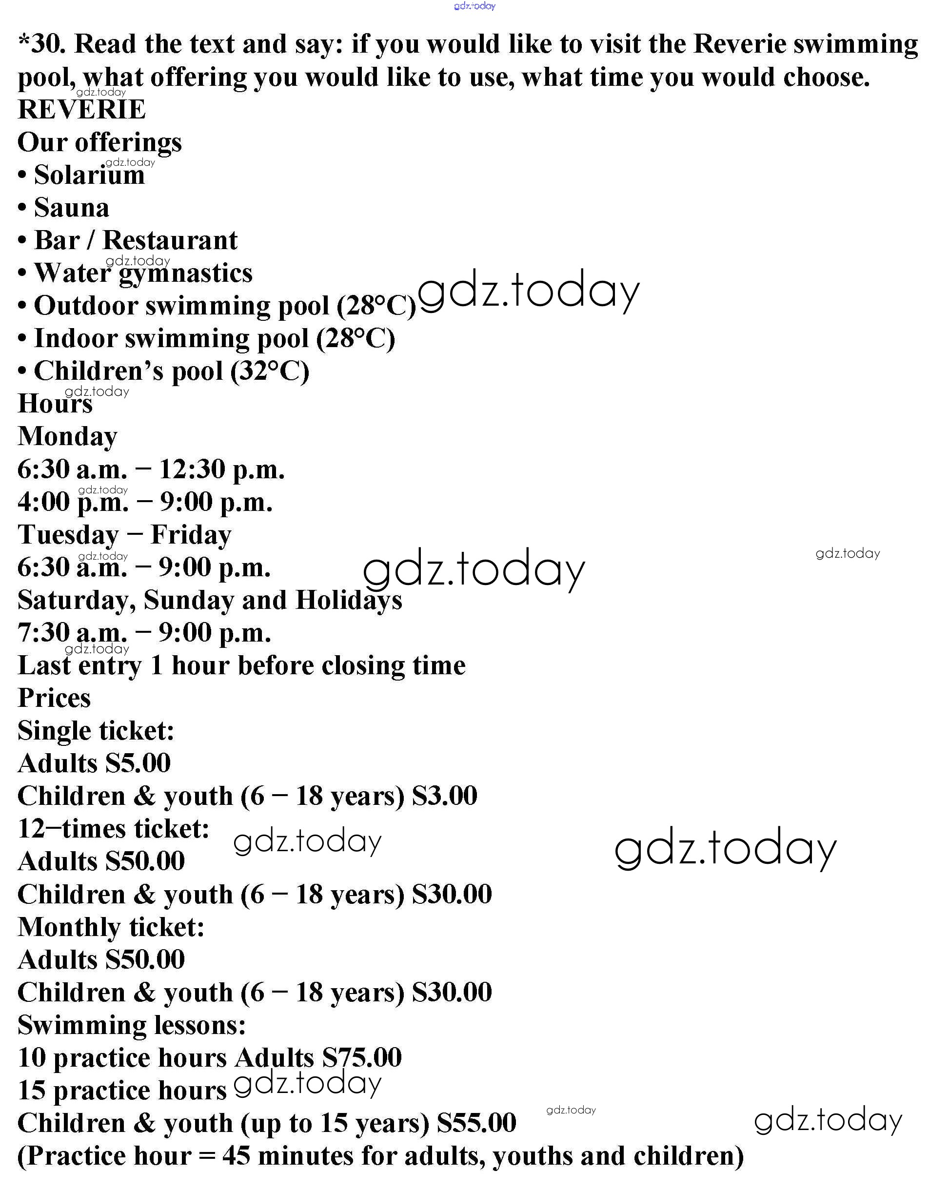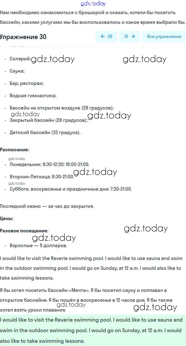 На страницах сайта gdz.today вы найдете учебный и вспомогательный материал, направленный на улучшения знаний школьной программы. ГДЗ - онлайн мир знаний Exercises Unit 4 30 Учебнику по Английскому языку для 7 класса Биболетова, Трубанева Титул, Дрофа УМК 2015, 2017