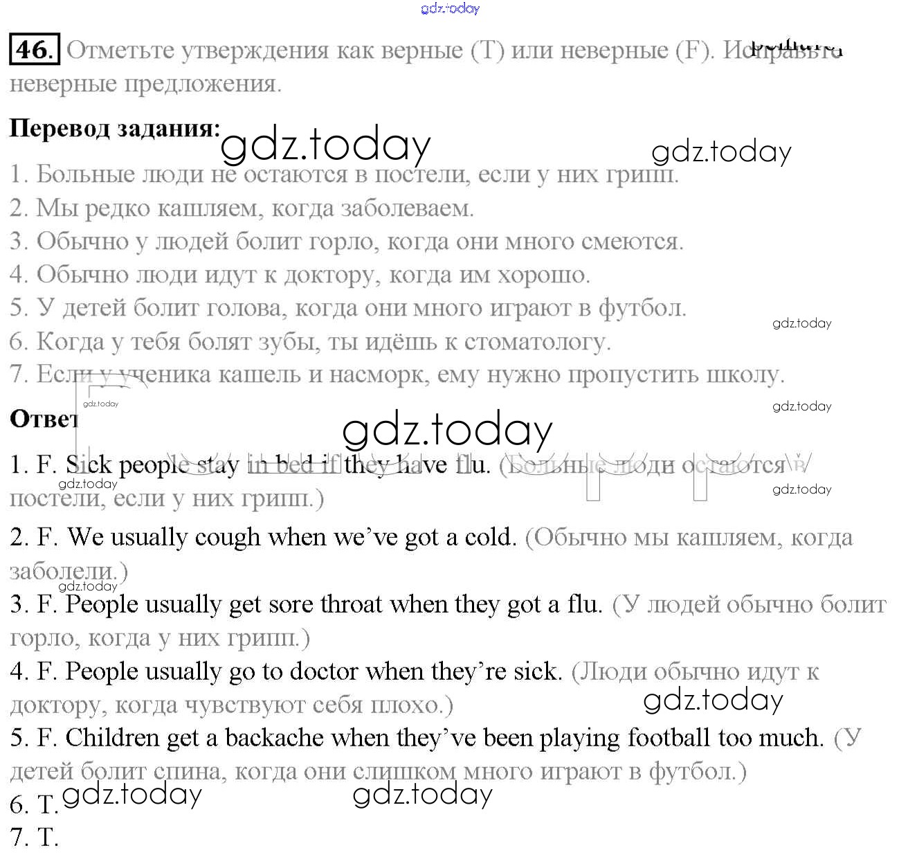 На страницах сайта gdz.today вы найдете учебный и вспомогательный материал, направленный на улучшения знаний школьной программы. ГДЗ - онлайн мир знаний Exercises Unit 4 46 Учебнику по Английскому языку для 7 класса Биболетова, Трубанева Титул, Дрофа УМК 2015, 2017