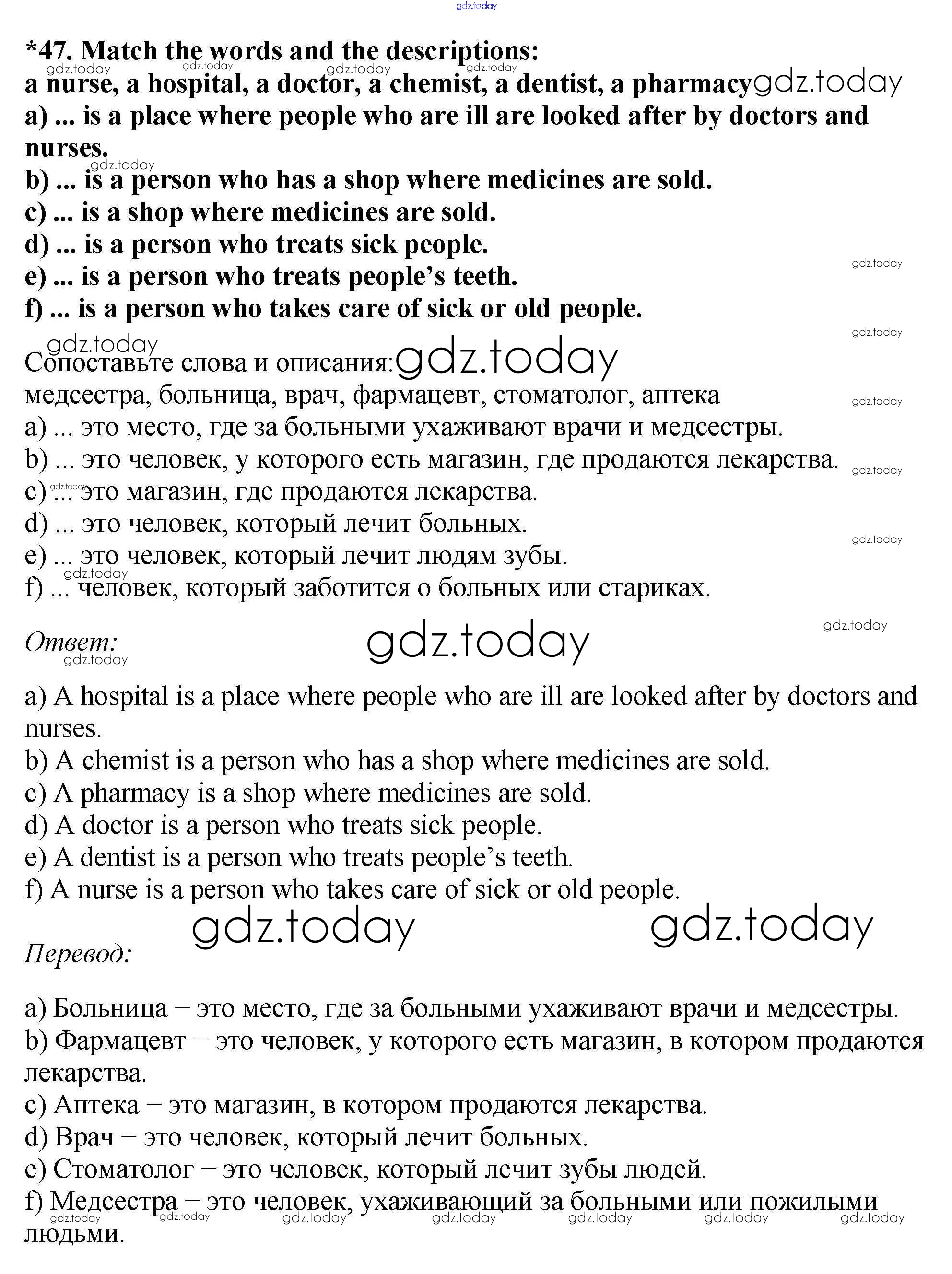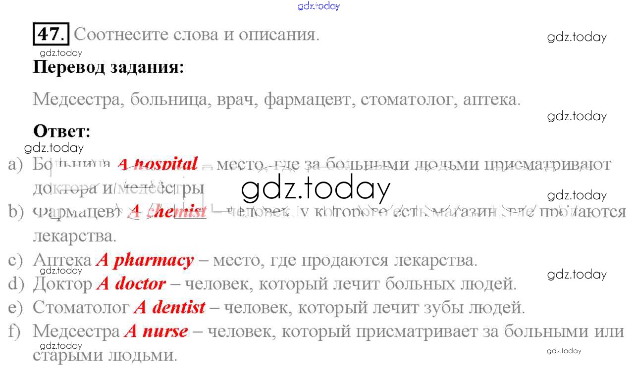 На страницах сайта gdz.today вы найдете учебный и вспомогательный материал, направленный на улучшения знаний школьной программы. ГДЗ - онлайн мир знаний Exercises Unit 4 47 Учебнику по Английскому языку для 7 класса Биболетова, Трубанева Титул, Дрофа УМК 2015, 2017