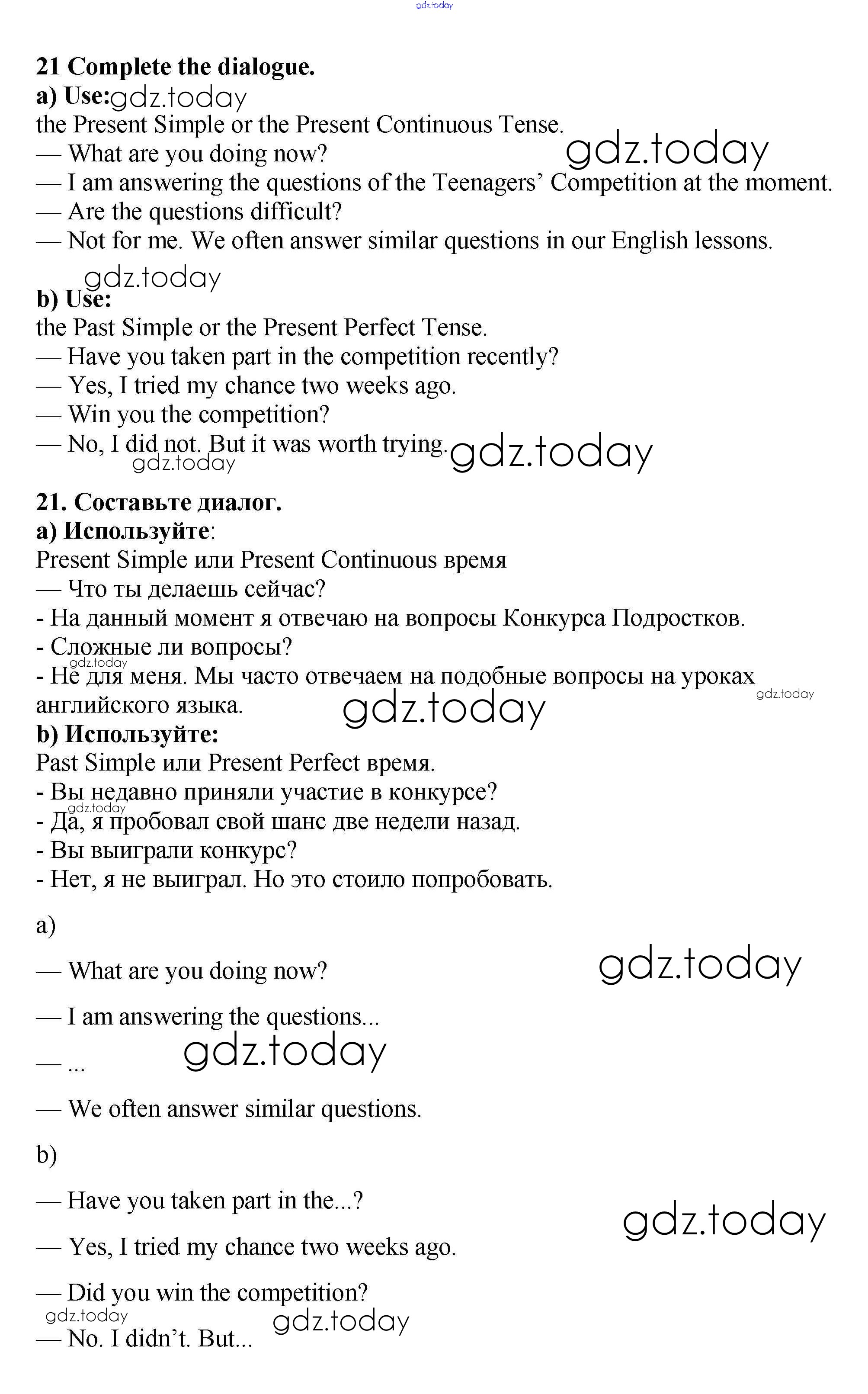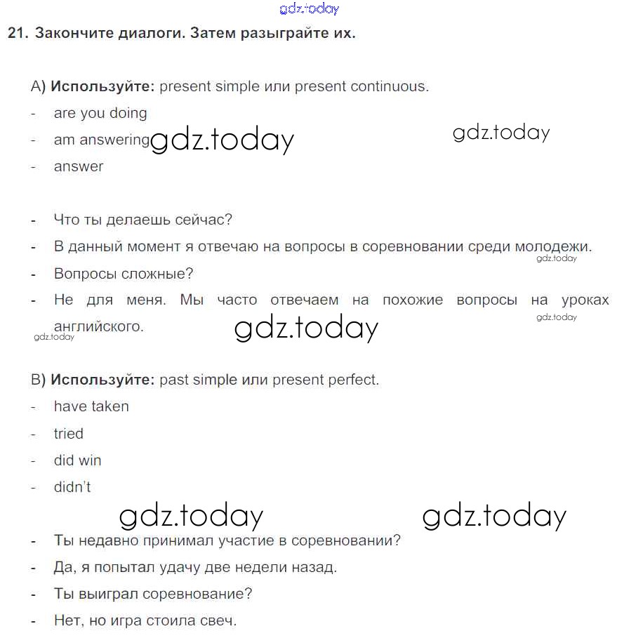 На страницах сайта gdz.today вы найдете учебный и вспомогательный материал, направленный на улучшения знаний школьной программы. ГДЗ - онлайн мир знаний Exercises Unit 1 21 Учебнику по Английскому языку для 7 класса Биболетова, Трубанева Титул, Дрофа УМК 2015, 2017