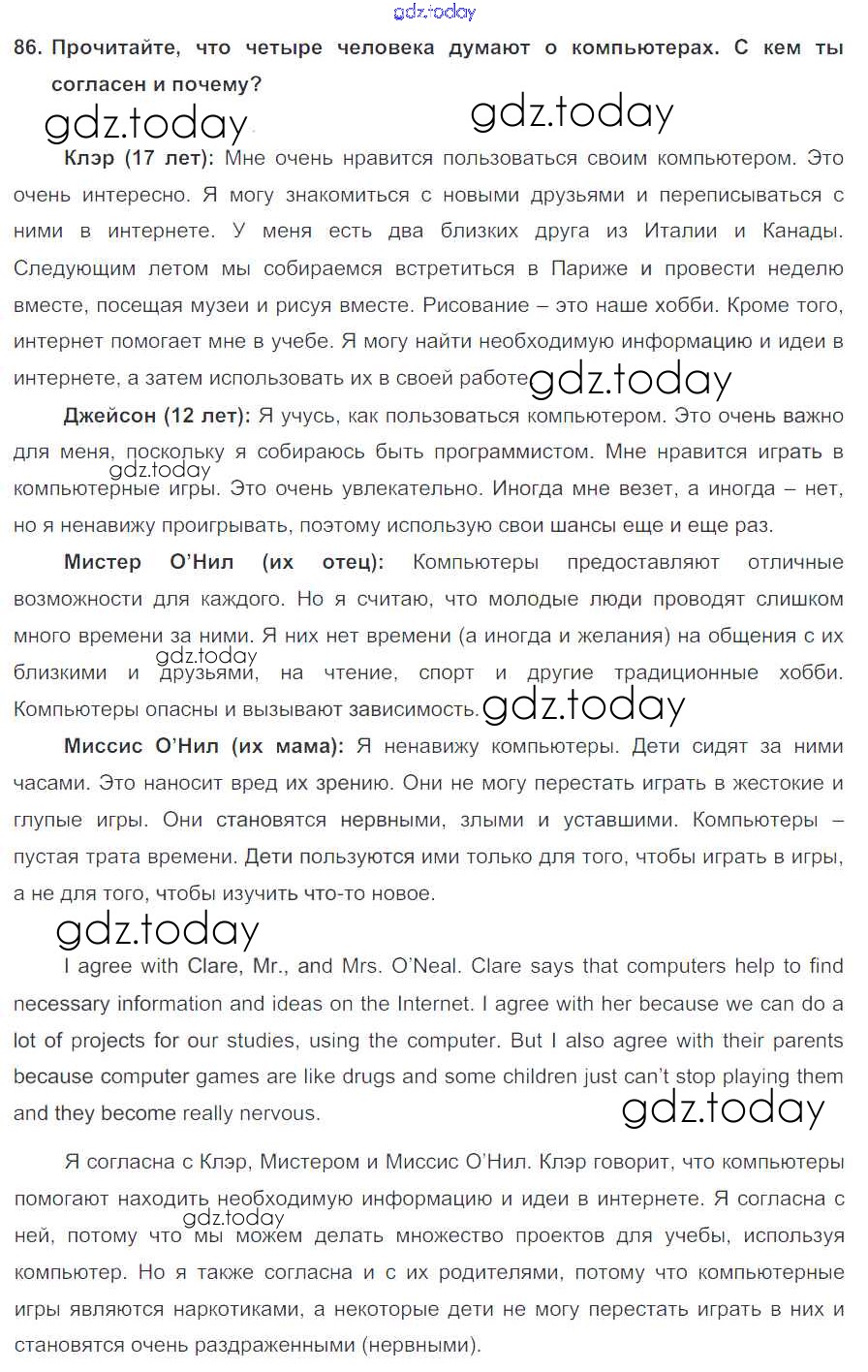 На страницах сайта gdz.today вы найдете учебный и вспомогательный материал, направленный на улучшения знаний школьной программы. ГДЗ - онлайн мир знаний Exercises Unit 1 86 Учебнику по Английскому языку для 7 класса Биболетова, Трубанева Титул, Дрофа УМК 2015, 2017