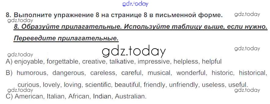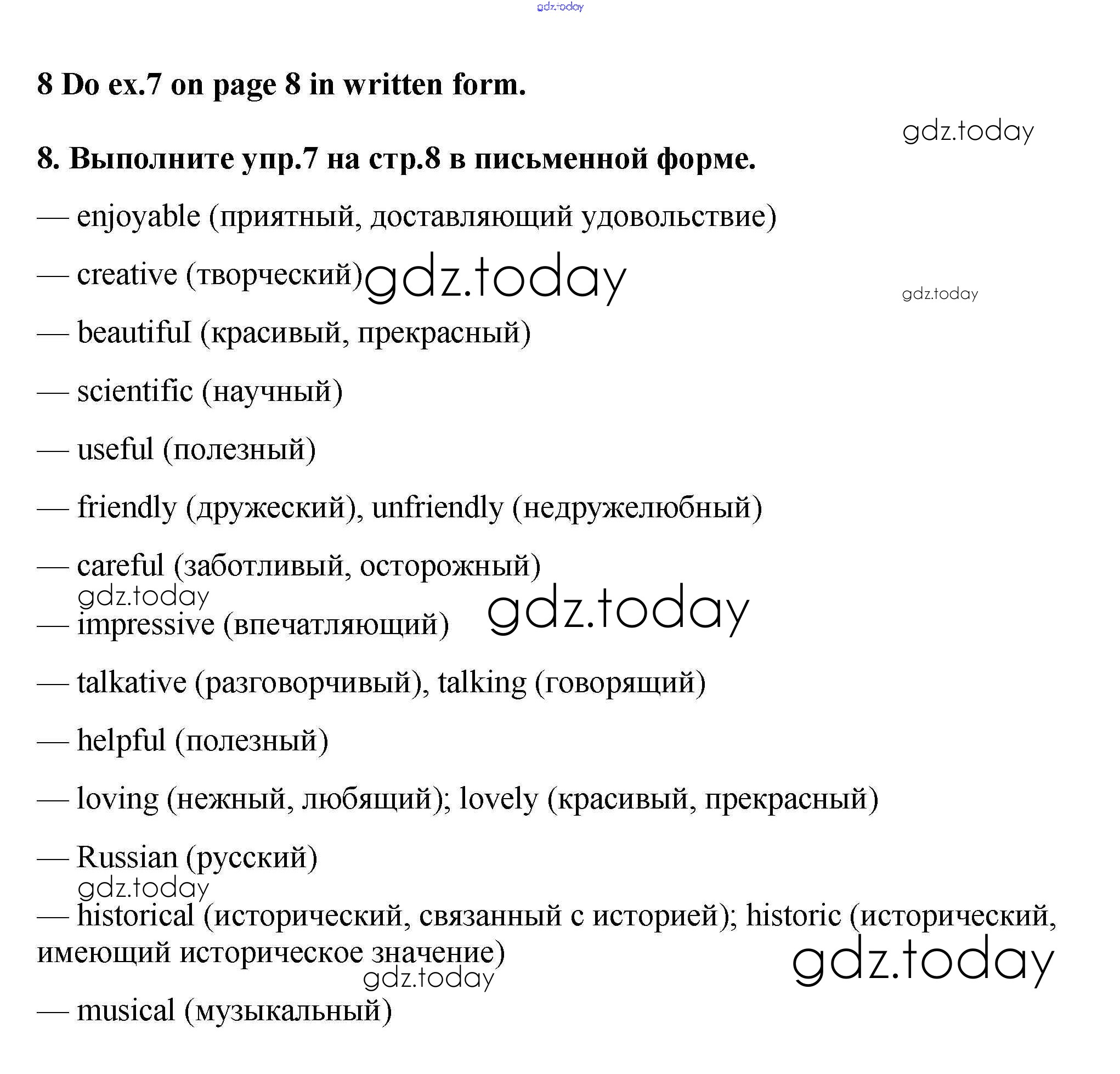 На страницах сайта gdz.today вы найдете учебный и вспомогательный материал, направленный на улучшения знаний школьной программы. ГДЗ - онлайн мир знаний Homework Unit 1 8 Учебнику по Английскому языку для 7 класса Биболетова, Трубанева Титул, Дрофа УМК 2015, 2017