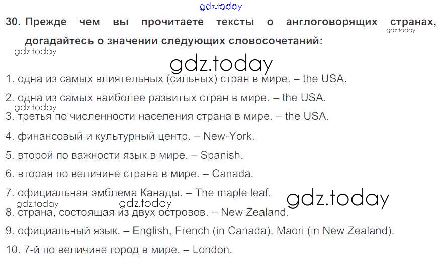 На страницах сайта gdz.today вы найдете учебный и вспомогательный материал, направленный на улучшения знаний школьной программы. ГДЗ - онлайн мир знаний Exercises Unit 2 30 Учебнику по Английскому языку для 7 класса Биболетова, Трубанева Титул, Дрофа УМК 2015, 2017