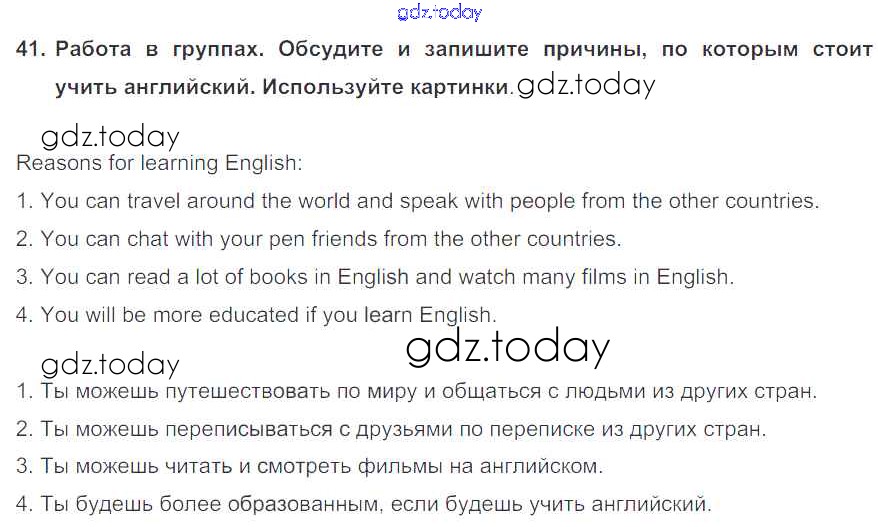 На страницах сайта gdz.today вы найдете учебный и вспомогательный материал, направленный на улучшения знаний школьной программы. ГДЗ - онлайн мир знаний Exercises Unit 2 41 Учебнику по Английскому языку для 7 класса Биболетова, Трубанева Титул, Дрофа УМК 2015, 2017