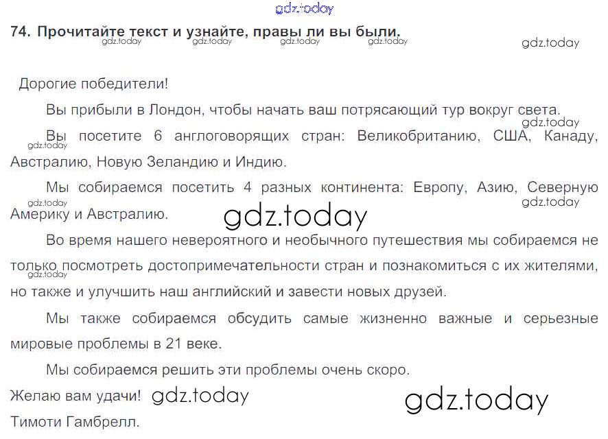 На страницах сайта gdz.today вы найдете учебный и вспомогательный материал, направленный на улучшения знаний школьной программы. ГДЗ - онлайн мир знаний Exercises Unit 2 74 Учебнику по Английскому языку для 7 класса Биболетова, Трубанева Титул, Дрофа УМК 2015, 2017