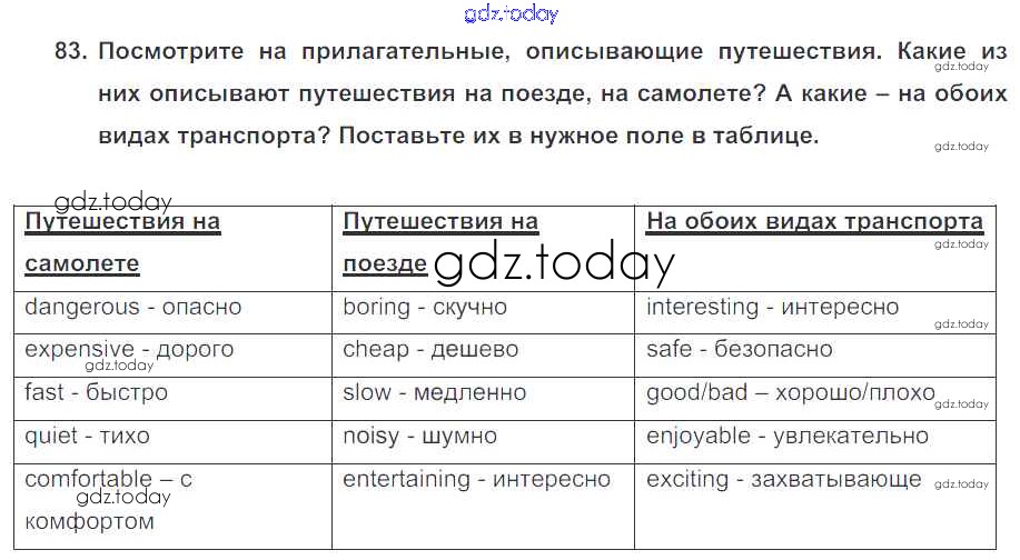 На страницах сайта gdz.today вы найдете учебный и вспомогательный материал, направленный на улучшения знаний школьной программы. ГДЗ - онлайн мир знаний Exercises Unit 2 83 Учебнику по Английскому языку для 7 класса Биболетова, Трубанева Титул, Дрофа УМК 2015, 2017