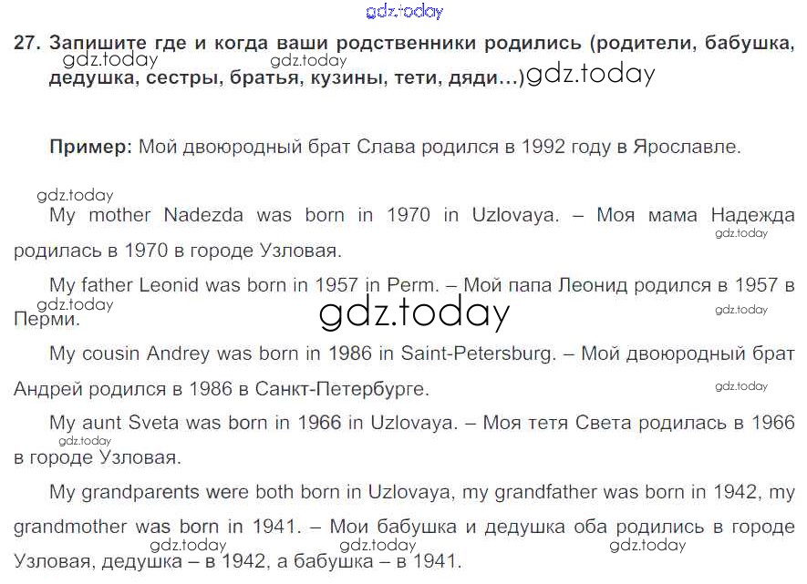 На страницах сайта gdz.today вы найдете учебный и вспомогательный материал, направленный на улучшения знаний школьной программы. ГДЗ - онлайн мир знаний Homework Unit 2 27 Учебнику по Английскому языку для 7 класса Биболетова, Трубанева Титул, Дрофа УМК 2015, 2017