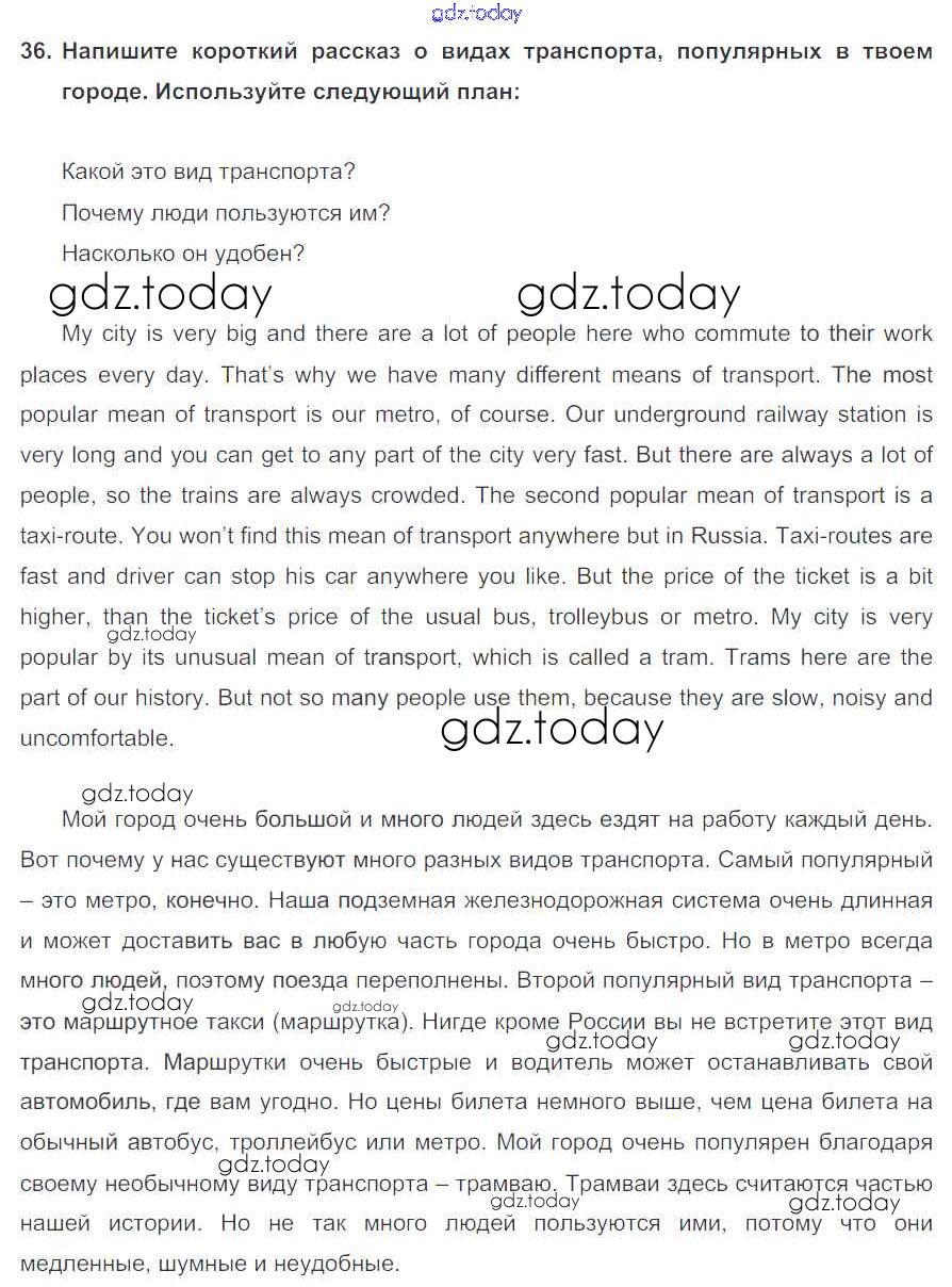 На страницах сайта gdz.today вы найдете учебный и вспомогательный материал, направленный на улучшения знаний школьной программы. ГДЗ - онлайн мир знаний Homework Unit 2 36 Учебнику по Английскому языку для 7 класса Биболетова, Трубанева Титул, Дрофа УМК 2015, 2017