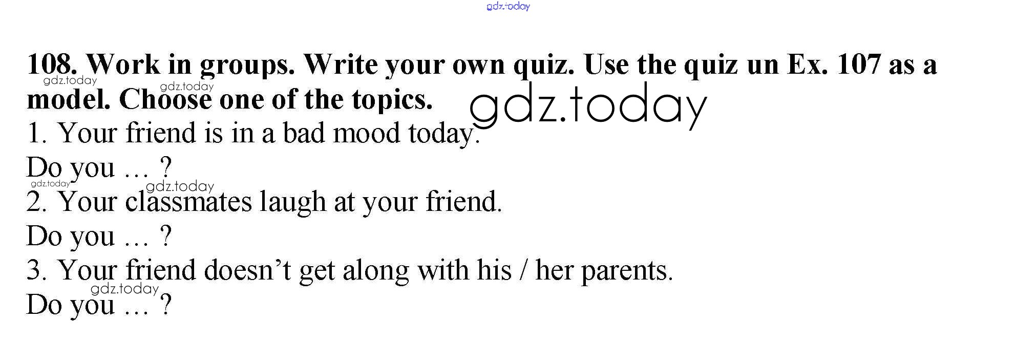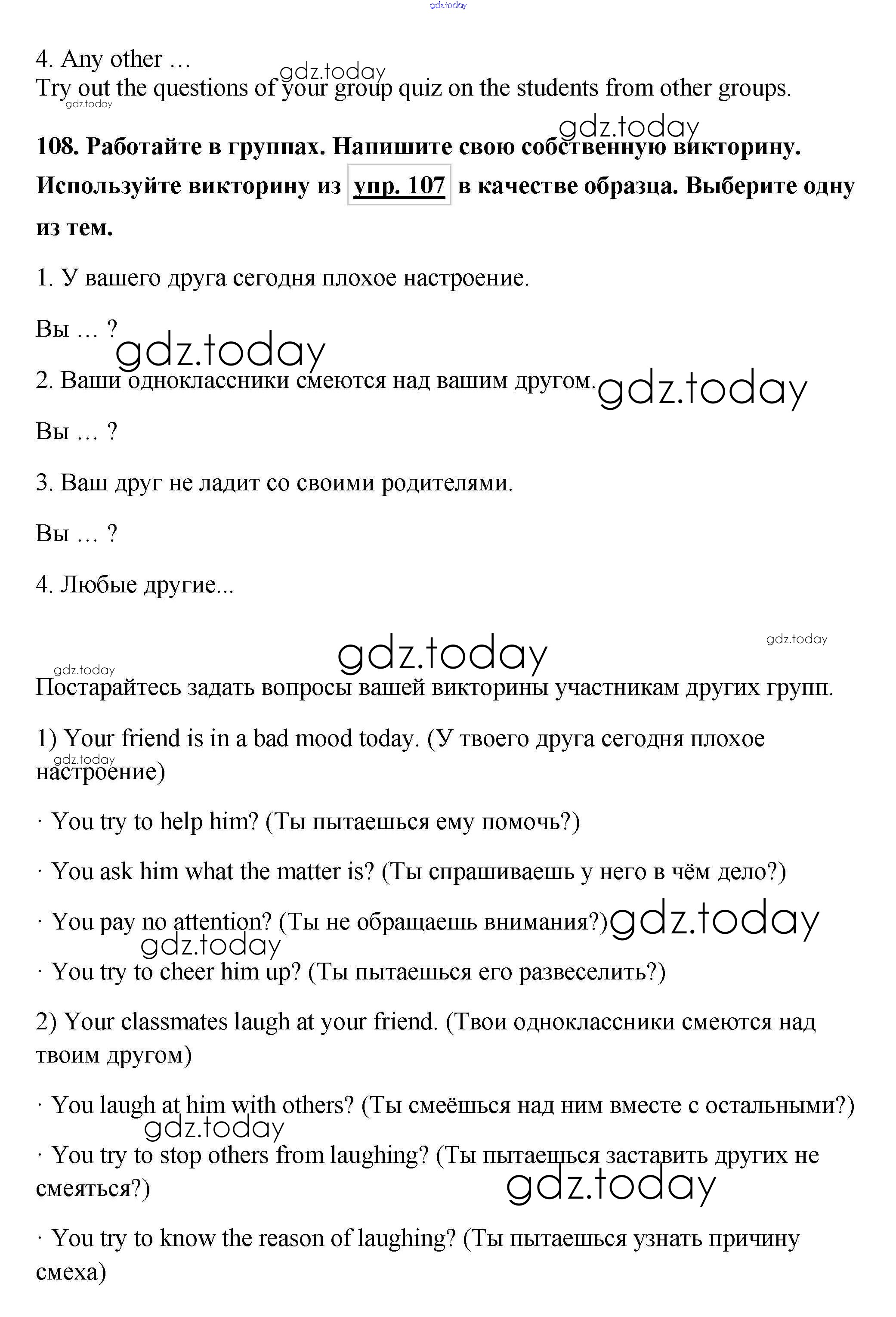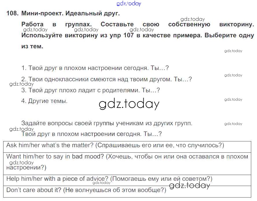 На страницах сайта gdz.today вы найдете учебный и вспомогательный материал, направленный на улучшения знаний школьной программы. ГДЗ - онлайн мир знаний Exercises Unit 3 108 Учебнику по Английскому языку для 7 класса Биболетова, Трубанева Титул, Дрофа УМК 2015, 2017