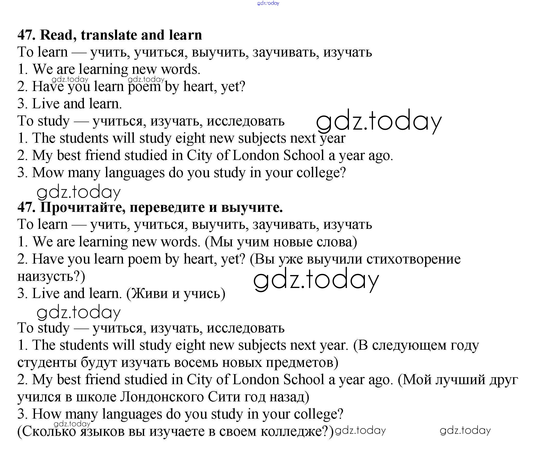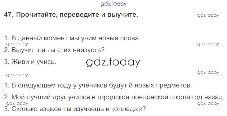На страницах сайта gdz.today вы найдете учебный и вспомогательный материал, направленный на улучшения знаний школьной программы. ГДЗ - онлайн мир знаний Exercises Unit 3 47 Учебнику по Английскому языку для 7 класса Биболетова, Трубанева Титул, Дрофа УМК 2015, 2017