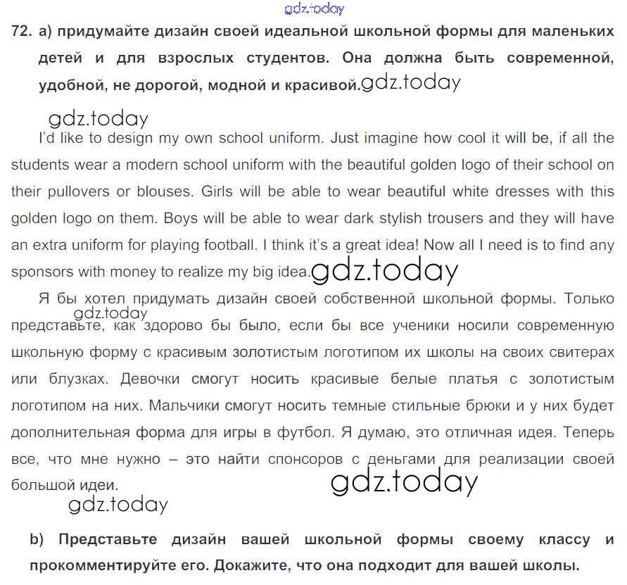 На страницах сайта gdz.today вы найдете учебный и вспомогательный материал, направленный на улучшения знаний школьной программы. ГДЗ - онлайн мир знаний Exercises Unit 3 72 Учебнику по Английскому языку для 7 класса Биболетова, Трубанева Титул, Дрофа УМК 2015, 2017